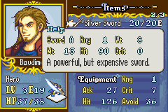 Silver Sword 銀の剣 威力13 命中90 を装備している。