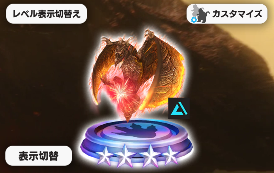 | ・バトル開始時からゲージがたまる(35秒で最大)最大になると、強制的に4コスト(足りない場合は残りのコストをすべて消費し)を使ってキングギドラ(2019)を最大HP70%の状態で召喚する(その後、ゲージはなくなる) | |||