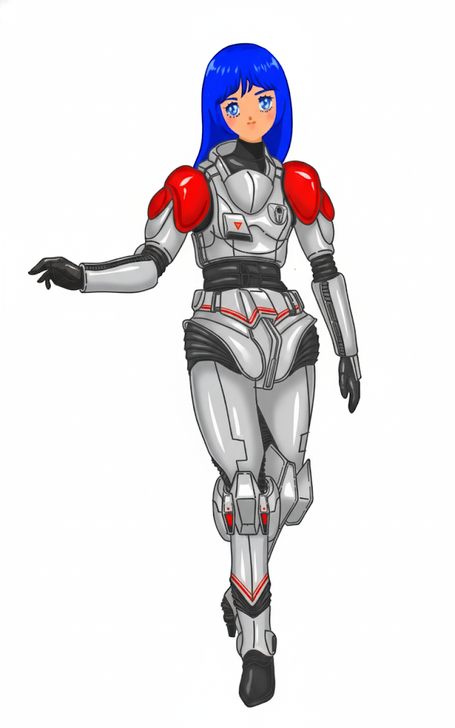 - 宇宙機甲団・耐圧・耐GスーツF型(女性用実写版)ハリウッド女優がTactical Armored Space Corpsの実写映画用のアンチプレッシャーおよびアンチGスーツを着用し、オーロラ・スターリング(Aurora Sterling)を演じる3Dカメラテスト