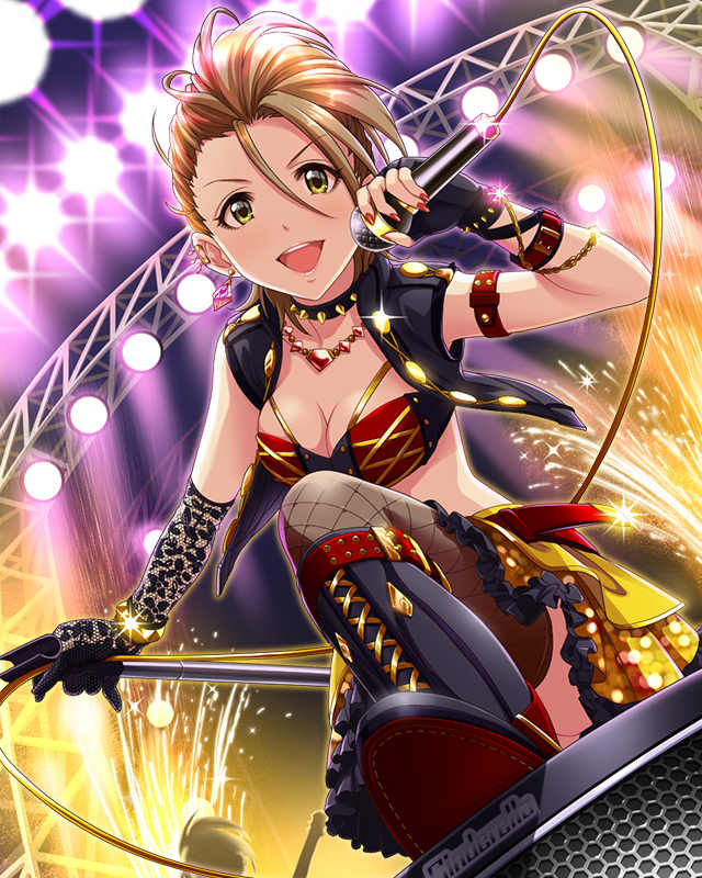 | アイドルコメント | 激しいギターに負けないボーカルは○○さんとの日頃のレッスンのおかげだぜ!ロックなアイドルにはロックを分かってるプロデューサーが必要ってことだな! さぁ、行くぜ!ロックの魂見せてやるよ |
