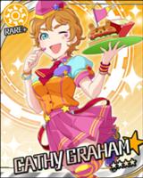 | アイドルコメント | ハァイ!キャシーデース!プロデューサーサーン、ヨロシクー!…なーんて!いや実は日本語バッチリってか英語喋れないし! ニューヨーク生まれ浅草育ちをナメちゃいけないって事よ!そんなワケでプロデューサー、よろしくぅ! |