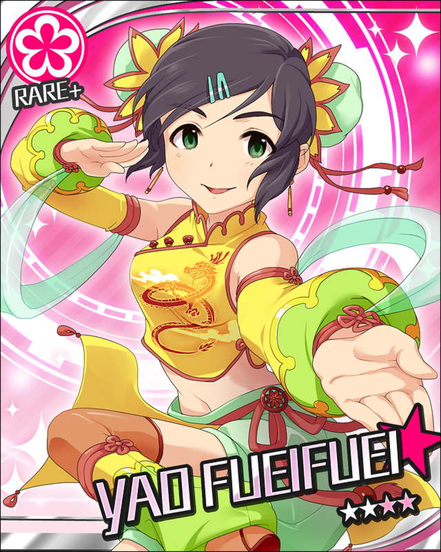 | 親愛度MAXコメント | ○○さんのこと考えると、ふぇいふぇいはいつでもニッコリ笑顔なれるヨー。一緒に、ずーっと楽しくアイドルやろうネ!エヘヘ♪ |