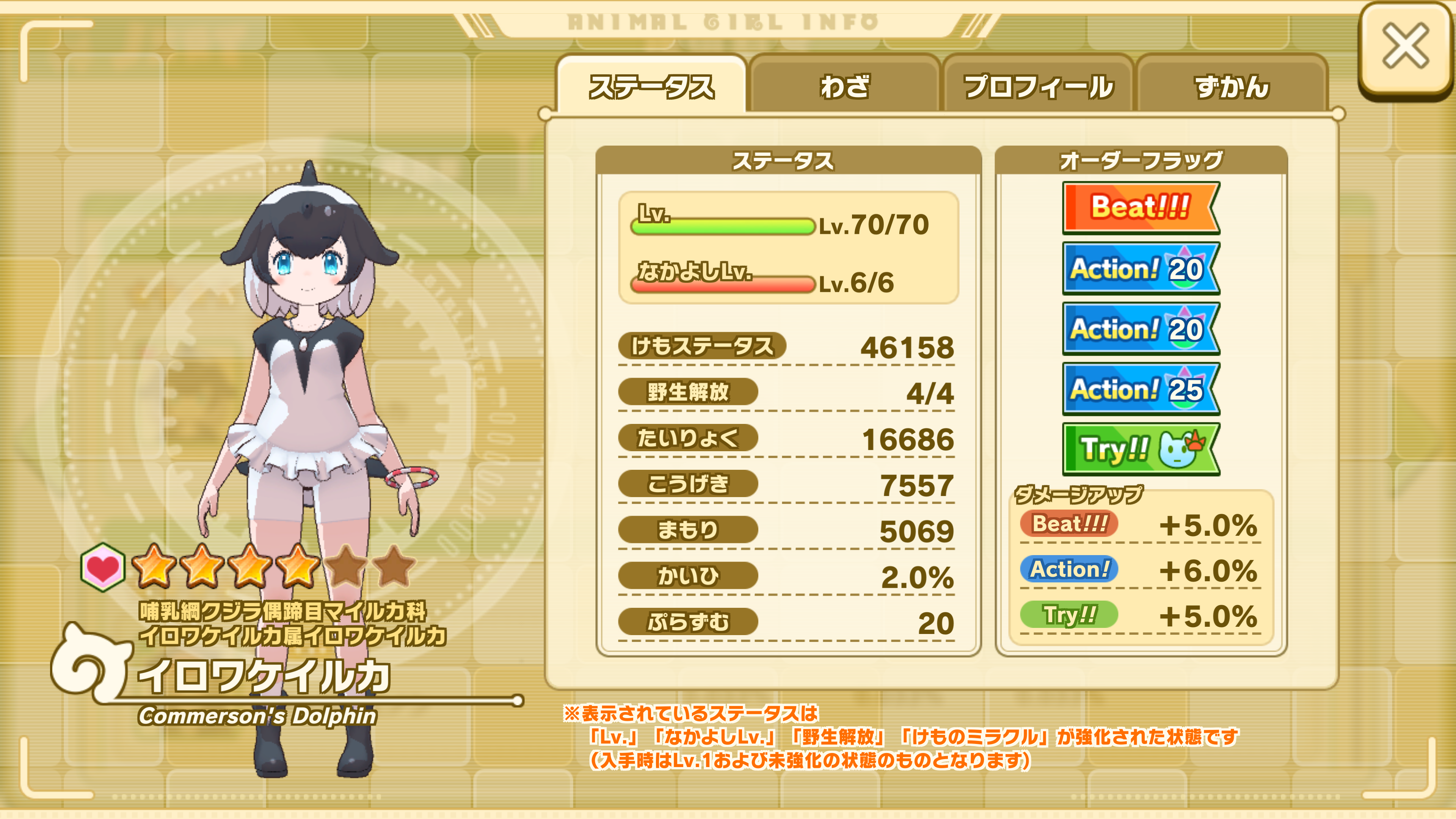 | Lv.5 +[Action!] | Áê¼êñÂΤË546%¤Î¥À¥á¡¼¥¸¤òÍ¿¤¨¤ë ¤µ¤é¤ËÌ£ÊýÁ´ÂΤÎÍ¿¥À¥á¡¼¥¸¤¬20%Áý²Ã¤· ¥é¥Ö¥ê¡¼(Åí)°À¤ÎÌ£Êý¤ÎÍ¿¥À¥á¡¼¥¸¤¬24%Áý²Ã¤¹¤ë(3¥¿¡¼¥ó) | |