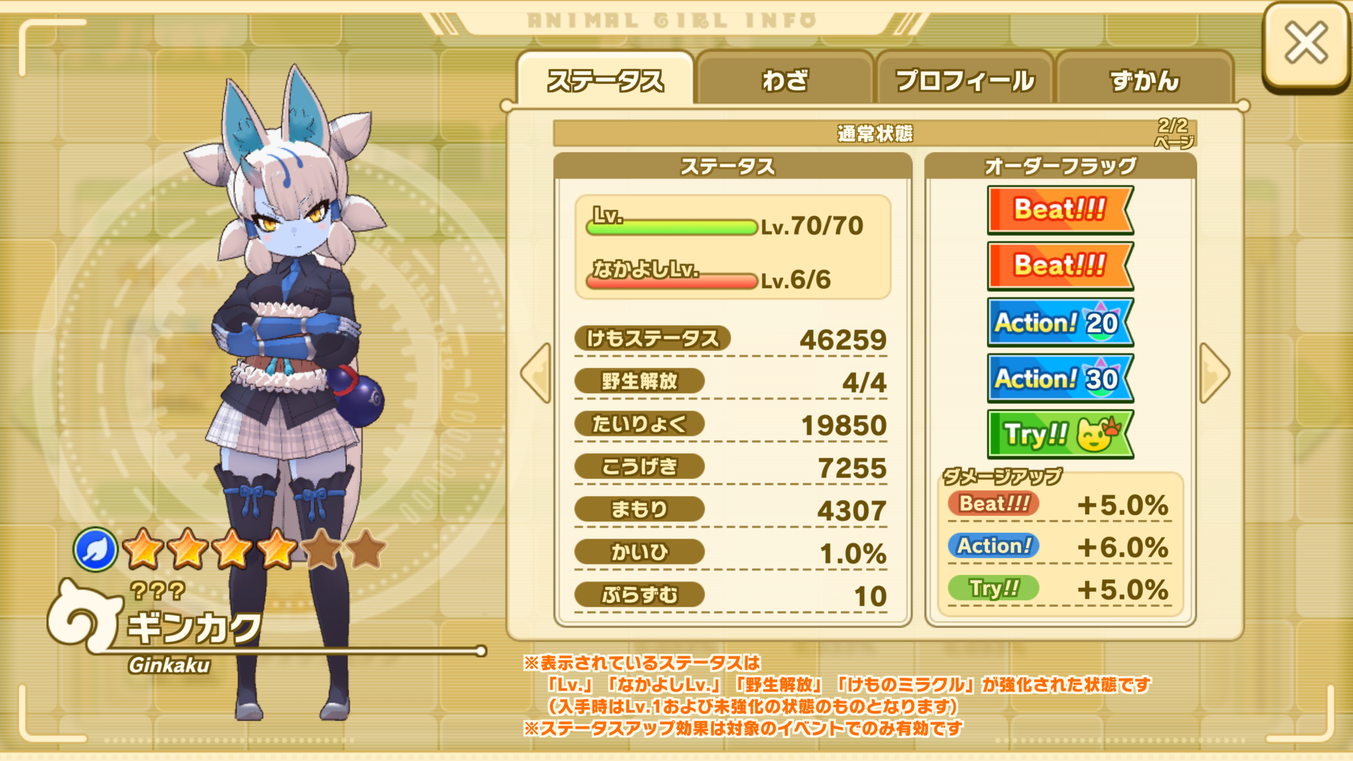 | Lv.5 +[Action!] | Áê¼êñÂΤË140%¤È98%¡ß5¤Î¥À¥á¡¼¥¸¤òÍ¿¤¨ Èï¥À¥á¡¼¥¸¤ò21%Áý²Ã¤µ¤»¤ë(3¥¿¡¼¥ó) ¤µ¤é¤Ë¹â³ÎΨ¤Ç¤É¤¯¾õÂ֤ˤ· Ãæ³ÎΨ¤Ç¤·¤ç¤ó¤Ü¤ê¤¤Ö¤ó¡¢¤Ð¤Æ¤Ð¤Æ¥Ò¥ê¥Ò¥ê¾õÂ֤ˤ¹¤ë(2¥¿¡¼¥ó) ²Ã¤¨¤ÆÂоݤξõÂÖ°Û¾ï1¤Ä¤Ë¤Ä¤Èï¥À¥á¡¼¥¸¤ò7%Áý²Ã¤µ¤»¤ë(2¥¿¡¼¥ó) ¢¨³Æ¾õÂÖ°Û¾ïÉÕÍ¿¤Ï¤½¤ì¤¾¤ìÃêÁª¤µ¤ì½Åʣȯư¤â¤¹¤ë | |
