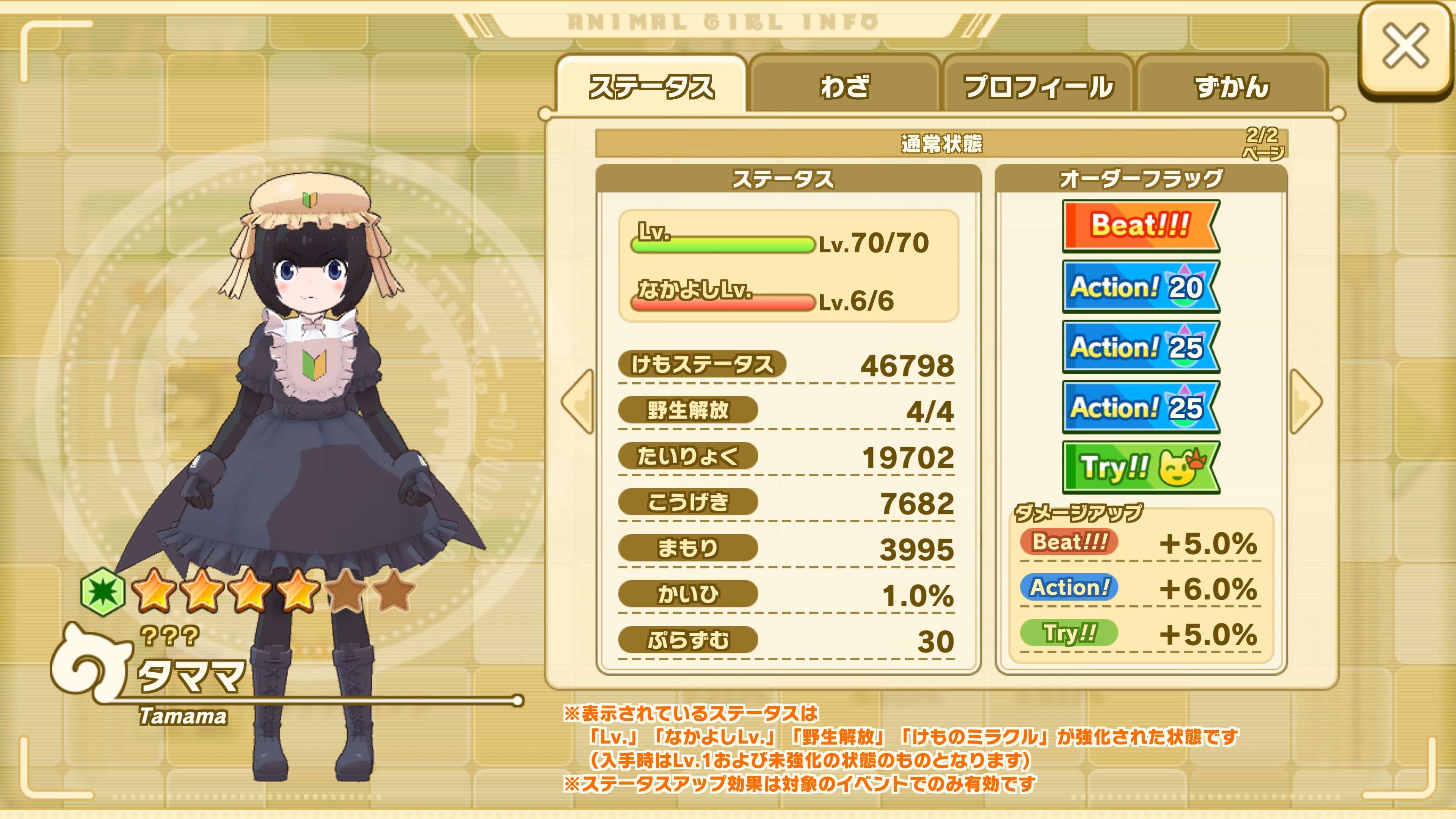 | Lv.5 +[Action!] | Áê¼êñÂΤË91%¡ß7¤Î¥À¥á¡¼¥¸¤òÍ¿¤¨ Èï¥À¥á¡¼¥¸¤ò32%Áý²Ã¤µ¤»¤ë(3¥¿¡¼¥ó) ¤µ¤é¤Ë¥Þ¥¤¥Ú¡¼¥¹(¿å)°À¤ÎÁê¼ê¤ÎMP¤ò19¸º¾¯¤µ¤»¤ë | |