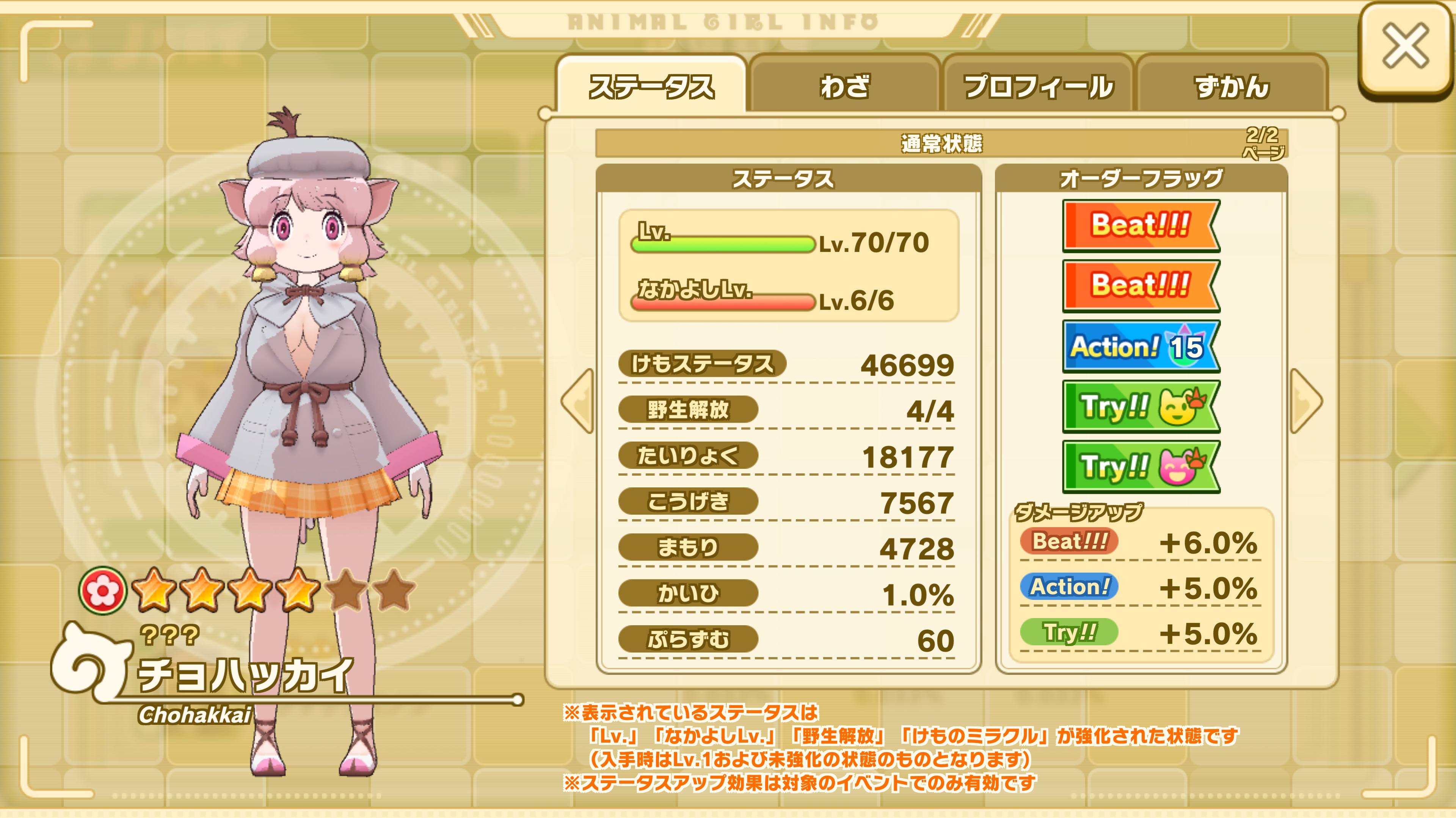 | Lv.5 +[Beat!!!] | Áê¼êñÂΤË1008%¤Î¥À¥á¡¼¥¸¤òÍ¿¤¨ ¹â³ÎΨ¤Ç¤Ü¤ó¤ä¤ê¤¦¤Ã¤«¤ê¾õÂ֤ˤ¹¤ë(2¥¿¡¼¥ó) ¤µ¤é¤ËÃæ³ÎΨ¤Ç¼«¿È¤ÎÍ¿¥À¥á¡¼¥¸¤¬10%¸º¾¯¤· ¹â³ÎΨ¤ÇÈï¥À¥á¡¼¥¸¤¬24%¸º¾¯¤¹¤ë(3¥¿¡¼¥ó) | |