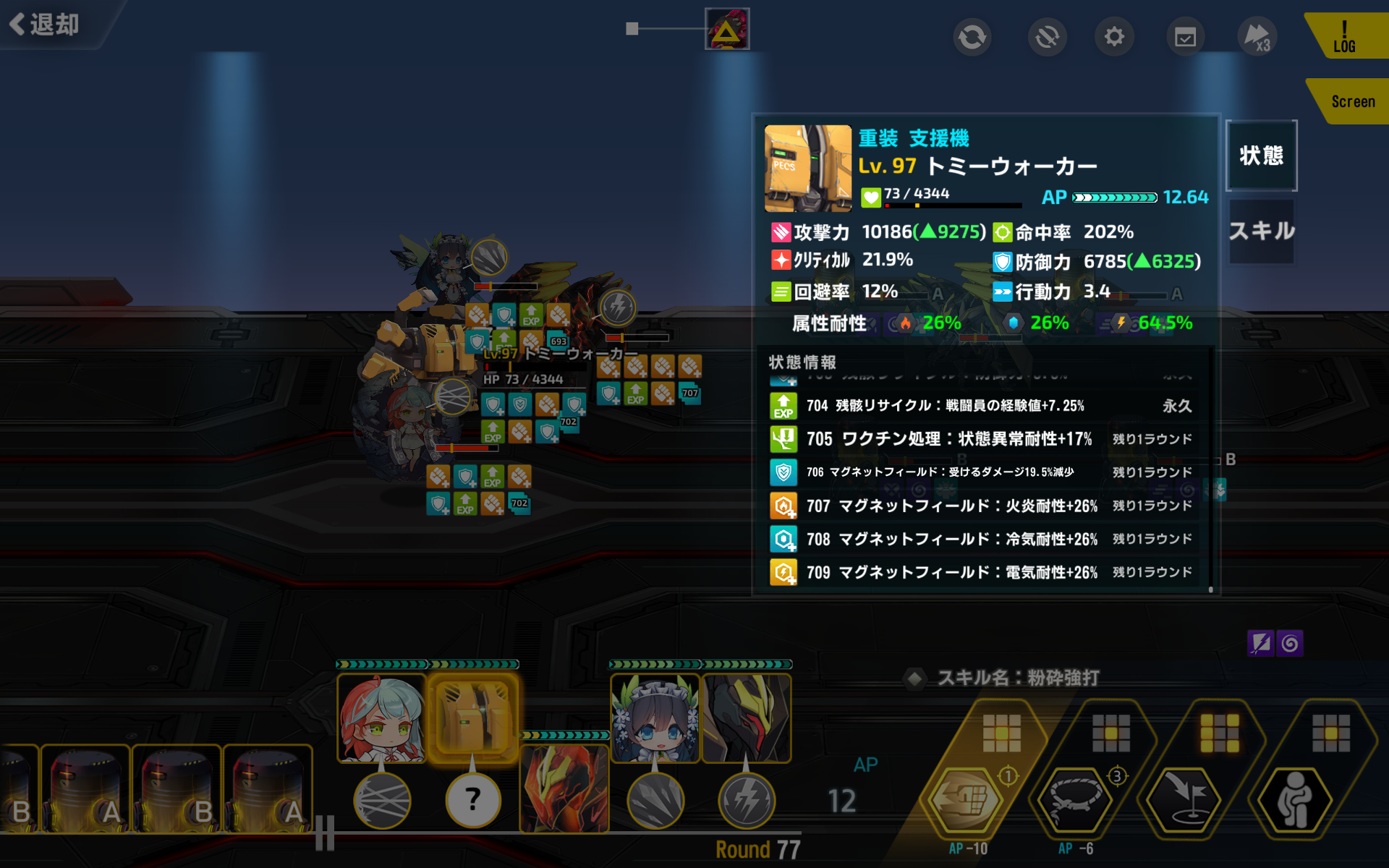 範囲攻撃対策で分散させると、攻撃支援使えるキャラの選択肢は少ないわ、半端な攻撃力だと反撃で撃墜されるわで、なかなか難しいですね。