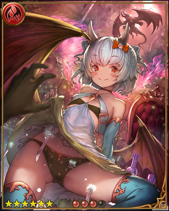 | 備考 このカードは「レジェンドガチャ(2019/10/18〜10/26)」で入手できます。 ガチャからこのカードを獲得することで称号「悪魔の肖像画」、魔晶石 [紅炎晶]幻罠画 を入手できます。 | |||