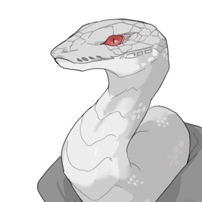 - 普段の首の長さは蛇というには普通過ぎる(準人型としては真っ当な範囲)が、必要とあらば瞬時に・柔軟に伸ばして腕以上の間合いを越えて獲物に食らいつける。