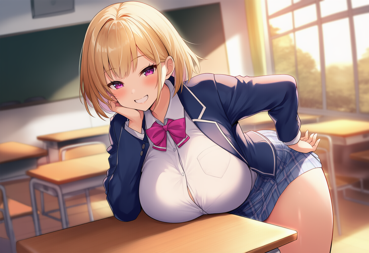 | breasts one's chest on the table | 机の上に胸を乗せる | collapseを付けると重量感が増すかも | ![]() | 編集 | |