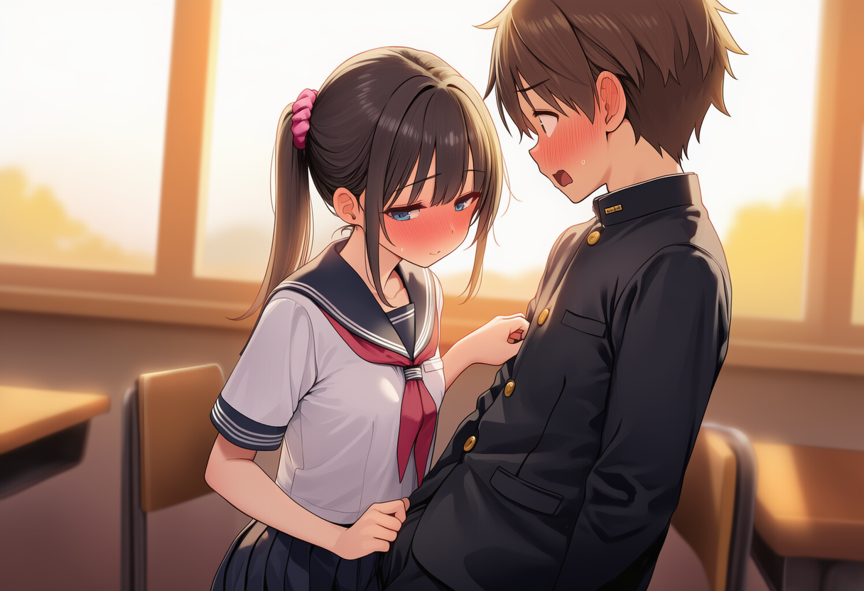 | skirt tug | スカートの裾を引っ張る | 添付画像は下記併用↓angry, contemptuous, disdain, swavy mouth, embarrassed, blush, upturned eyes, ,through mirror, facing down, | ![]() | 編集 |