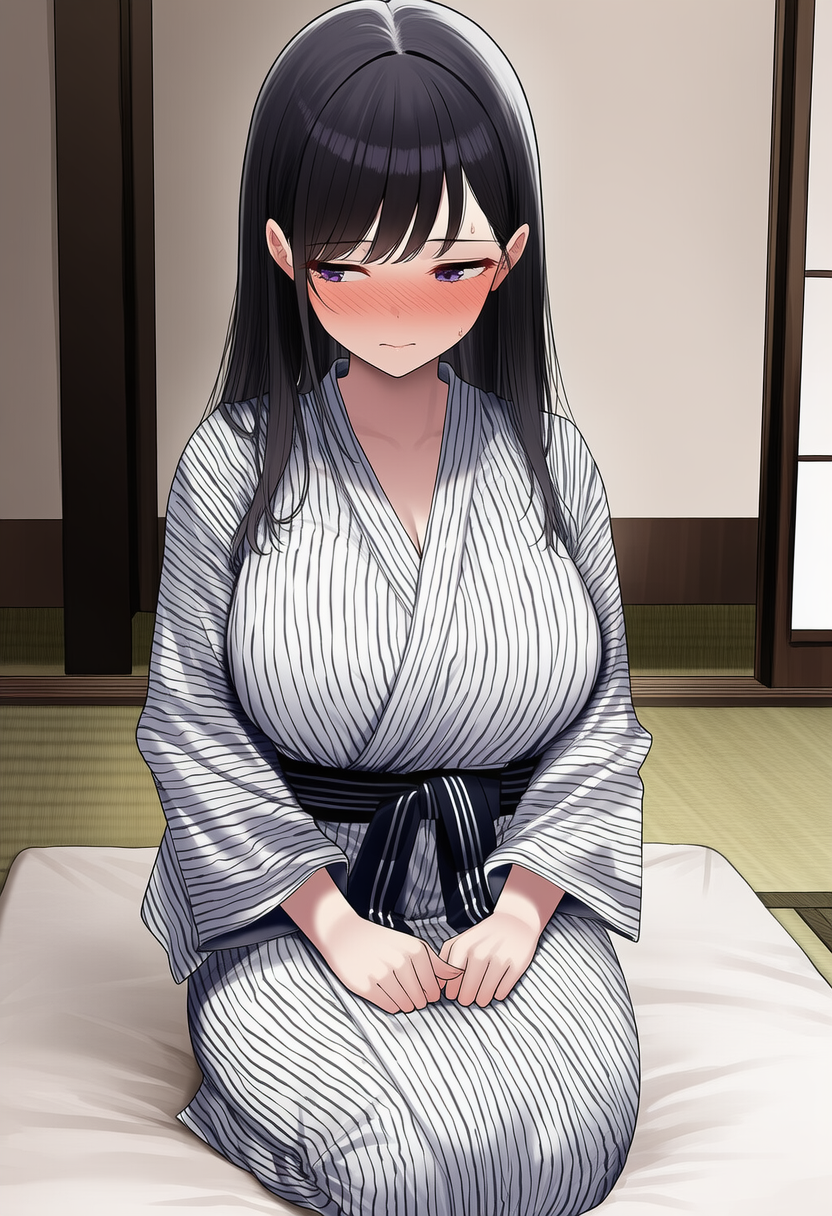 | on stomach | うつ伏せ | 足を上げる、頬杖をつくなど何らかのポーズを取ることが多いのでプロンプトで調整する必要がある。 | ![]() | 編集 |