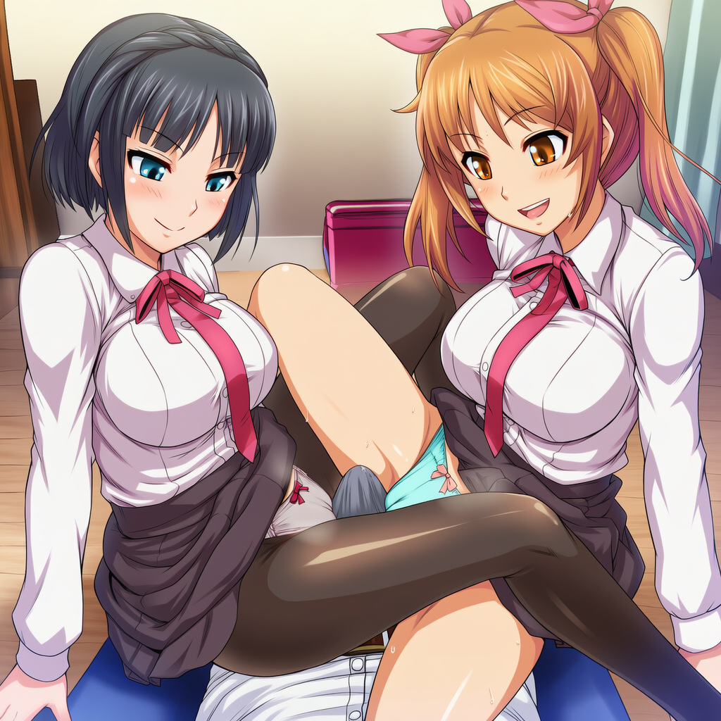 | ダブル股コキ(V4.5) | (メイン)nsfw,1boy,2girls (キャラクター1,2)girl,smie,teamwork,grinding,spread legs (キャラクター3),POV, | 他の方にも再現できるプロンプトをお願いします。オリジナルはPantyshotというプロンプトがあったため、顔が写らない構図になっていた。またサンプルはアニメキャラなどは使わない方が良いです。固有のアニメキャラによってプロンプトの再現性が異なります。 | ![]() | 編集 | |