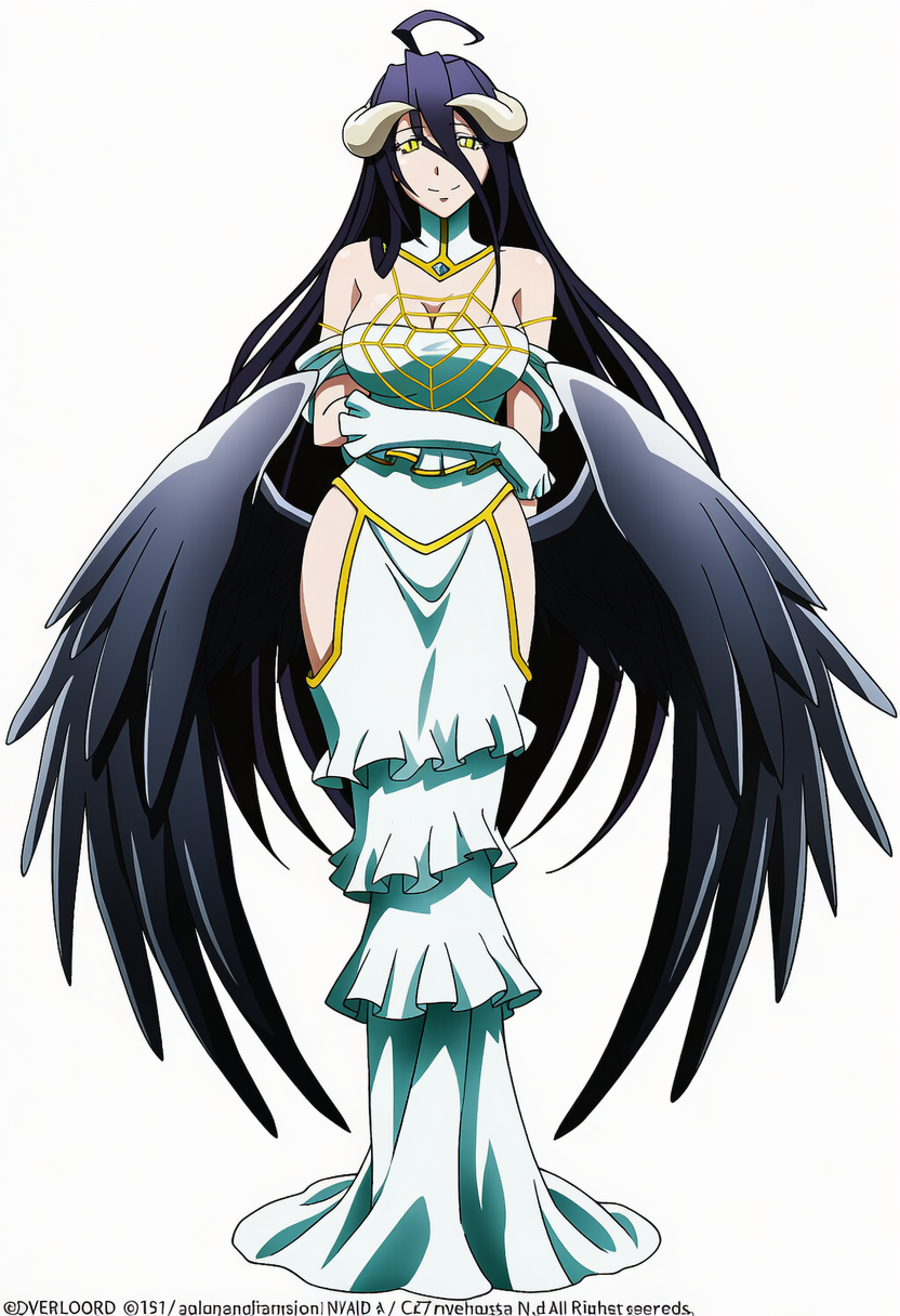| albedo (overlord), overlord (maruyama), girl, clothed female, white dress, white gloves, standing, full body, straight-on, | オーバーロード | アルベド | V4.5 Full版使用。キャラクタープロンプト1のみ記述。 | ![]() | 編集 | |