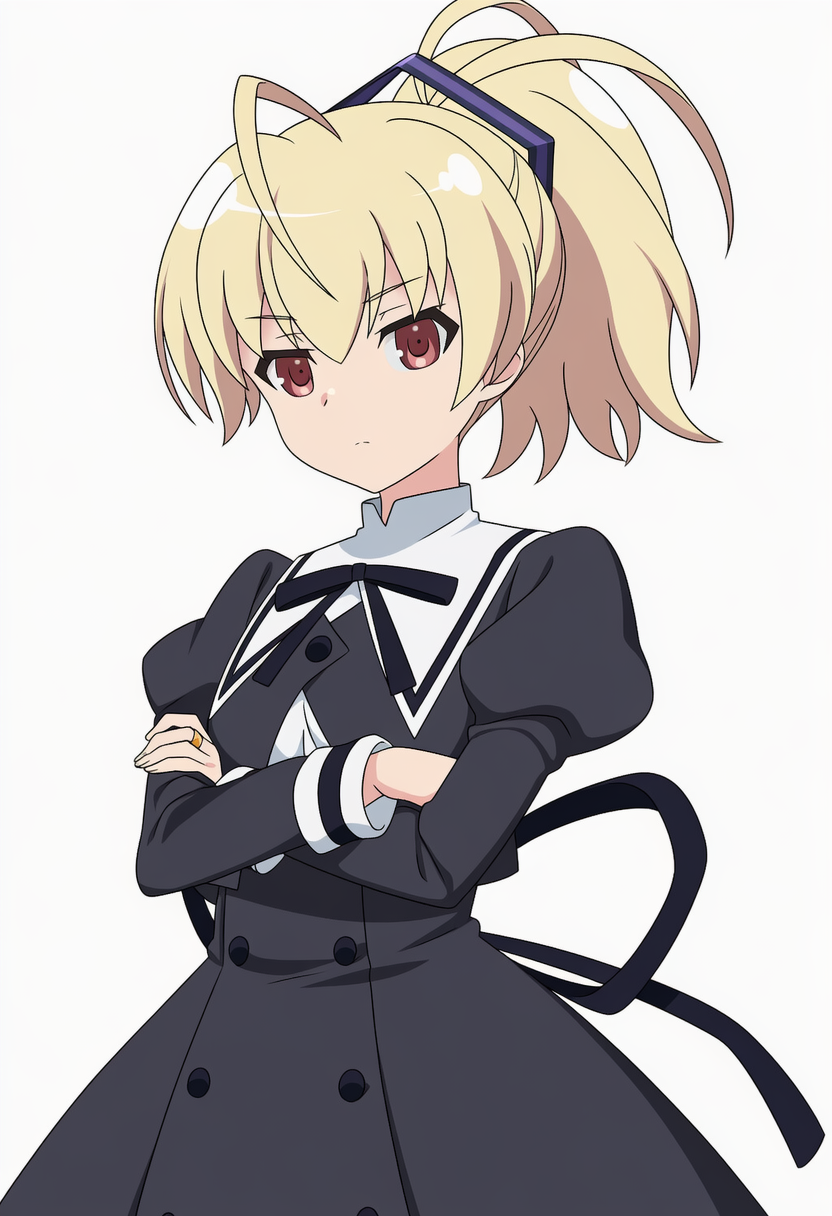| {{sanguu mitsuba}}, owari no seraph, twintails, purple eyes, blonde long hair, military uniform, black dress, short dress, sleeves rolled up, red bow, pleated skirt, black short skirt, white gloves, simple background, white background, ,1girl, solo, ,cowboy shot,,from front, facing the front, looking at viewer, straight-on, close to viewer, year 2023,,very aesthetic, best quality, amazing quality, ,curated, illustration, highly detailed, | 終わりのセラフ | 三宮三葉 | ![]() | 編集 |