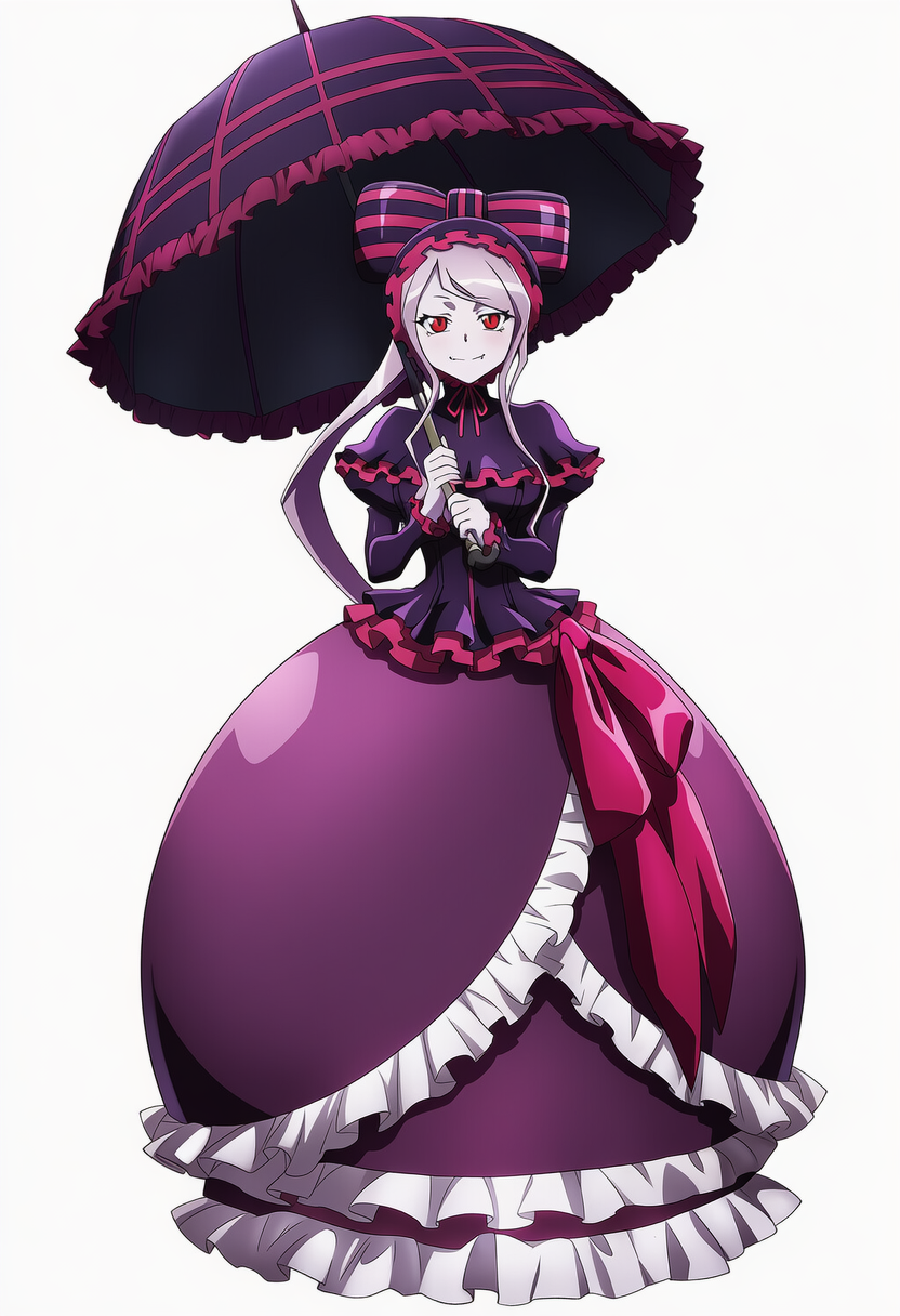 | shalltear bloodfallen, overlord (maruyama), girl, clothed female, purple dress, holding umbrella, standing, full body, straight-on, | オーバーロード | シャルティア・ブラッドフォールン | V4.5 Full版使用。キャラクタープロンプト1のみ記述。 | ![]() | 編集 | |