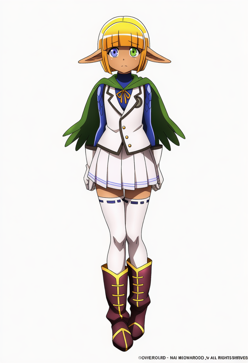 | mare bello fiore, overlord (maruyama), girl, clothed female, green cape, purple shirt, white jacket, gloves, white skirt, white thighhighs, boots, standing, full body, straight-on, | オーバーロード | マーレ・ベロ・フィオーレ | V4.5 Full版使用。キャラクタープロンプト1のみ記述。 | ![]() | 編集 | |
