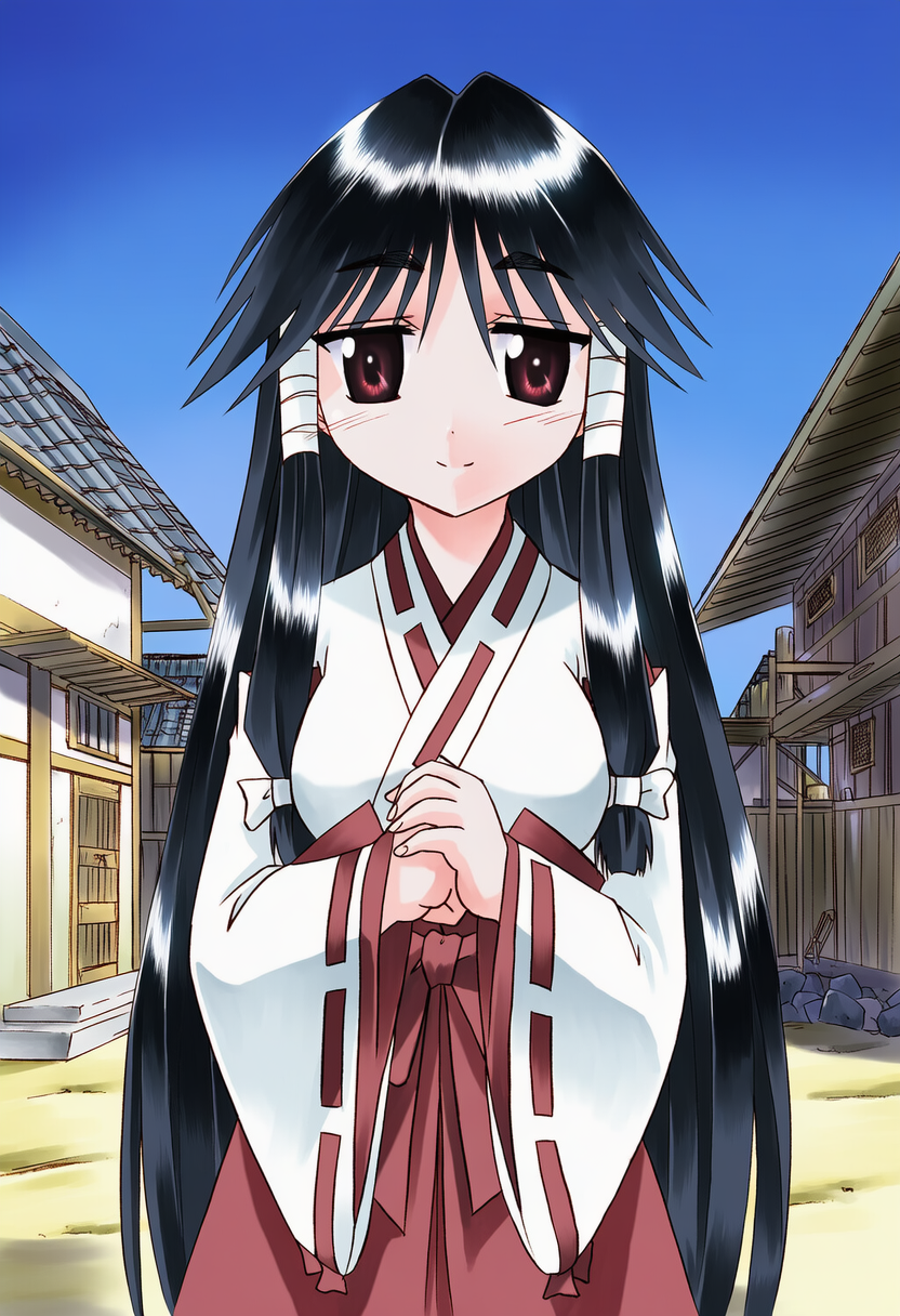 | official style, anime coloring, mochizuki ayako, nige jouzu no wakagimi, very aesthetic, best quality, intricate, overall detail, 1girl, miko, black hair, purple eyes, japanese clothes, white kimono, red hakama skirt, sandals, arms at side, standing, simple background, facing the front, straight-on, close to viewer, full body, character focus, intricate, hyper-detailed, 100-layer, amazing quality, excellent, {{{{ultra-high resolution}}}}, {{{hi-vision anime}}}, | poorly drawn, lowers, blurry, bokeh, worst quality, low quality, out of focus, ugly, error, jpeg artifacts, {{censor, bar censor}}, mosaic censorship, puffy nipples, extra digits, long body, cubism, bad anatomy, disfigured, poorly drawn, deformed, mutation, style of ai generated, | 逃げ上手の若君 | 望月亜也子 | V4 Curated Preview版使用。 | ![]() | 編集 |