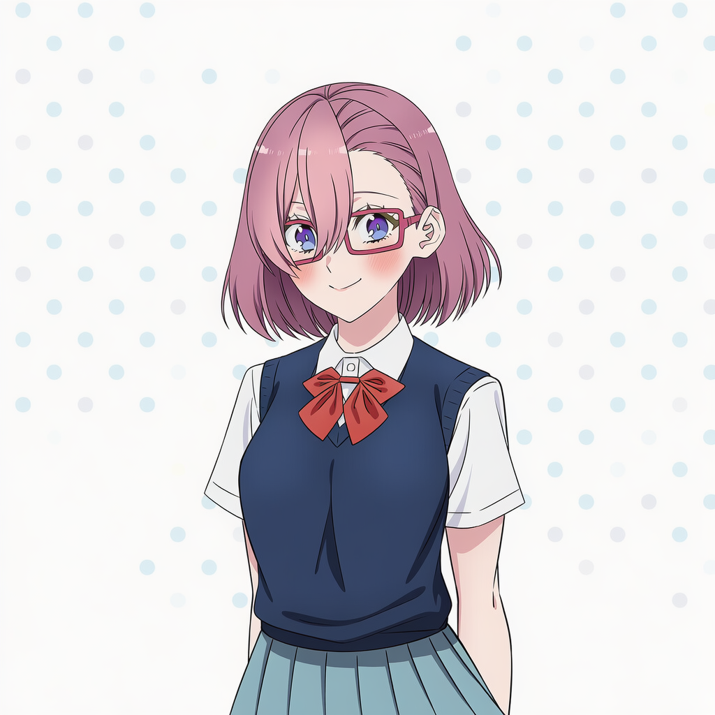 | official style,anime coloring,Amano Ririsa(nitengojigen_ririsa), purple eyes, purple hair, short hair, bangs,glasses, school uniform, short sleeves, white shirt, pleated skirt,standing,simple background,full body | 2.5次元の誘惑 | 天乃 リリサ | V4.5使用 | ![]() | 編集 |