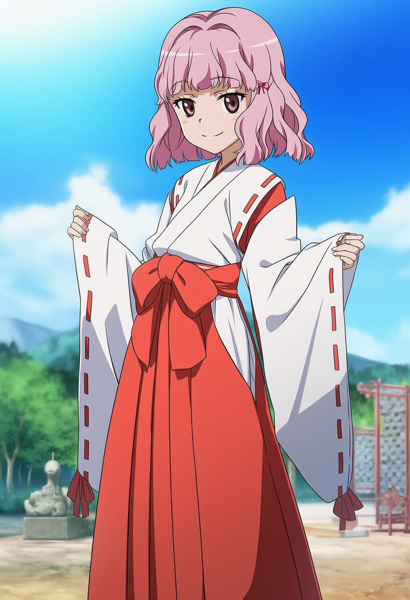 | official style,2d cel anime,,,, 1girl,,,,,,,Natsuiro Kiseki,Tamaki Rinko,Pink hair, shrine maiden outfit, | 夏色キセキ | 環 凛子 | V4.5 | ? | 編集 |
