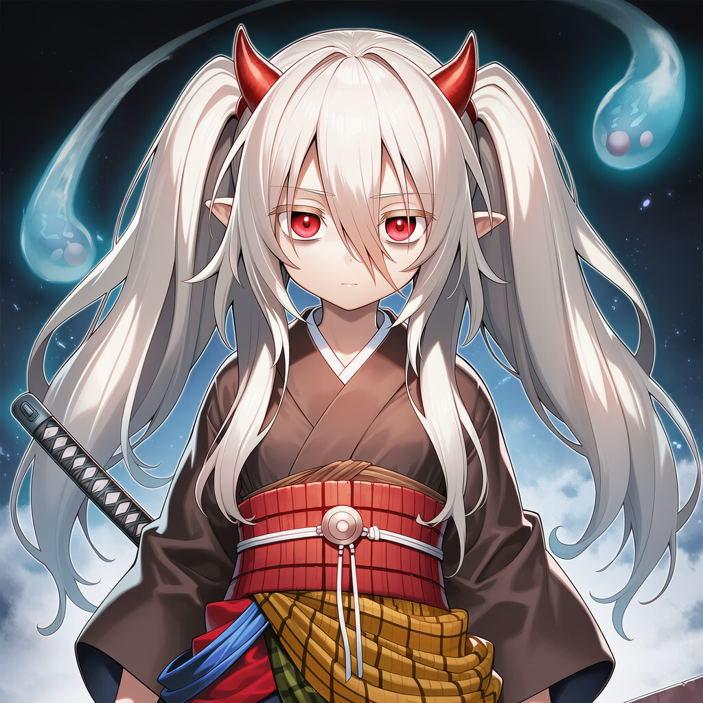 | 8k,anime coloring,official style,game cg,fleurdelis, the iris swordsoul,yu-gi-oh!,one eye covered, ofuda,horn jingasa, white leotard, blue long skirt, blue detached sleeves, red scabbard, brown boots, | | 遊戯王 | 妖眼の相剣師 | V4使用,V4.5生成可 |  | 編集 |