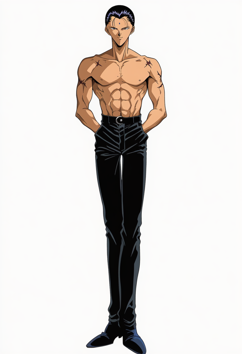 | 2d cel anime, {{yami yuugi, yu-gi-oh!}}, very aesthetic, best quality, intricate, overall detail, 1 boy, standing, light smile, simple background, front view, cowboy shot, facing the front, straight-on, solo focus, depth of field, highly detailed, | {{3d}}, poorly drawn, lowers, blurry, bokeh, worst quality, low quality, out of focus, ugly, error, jpeg artifacts, {{{{censor, bar censor}}}}, mosaic censorship, puffy nipples, extra digits, POV hands, | 遊戯王 | 闇遊戯 | V2使用。武藤遊戯より頭身が上がり、たくましいイメージになる。 |  | 編集 |