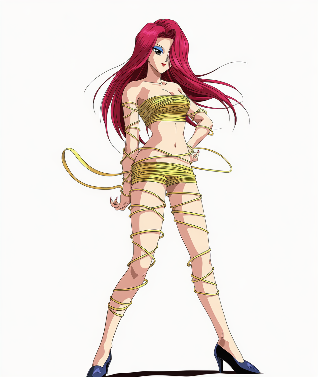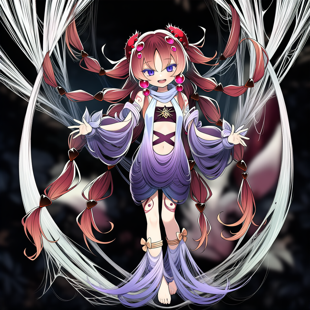 | yu-gi-oh!,hiita the fire charmer,red hair,shaggy cut,long hair,white dress shirt,open shirt,black strapless,black miniskirt,belt skirt,brown robe,navel | | 遊戯王 | 火霊使いヒータ | 服装はかなり不安定であり、生成を繰り返すうちにどんどん崩れてチューブトップまたはワンピースになる。 本来は服の上につけている黒いチューブトップのようなものは再現できず。 |  | 編集 |
