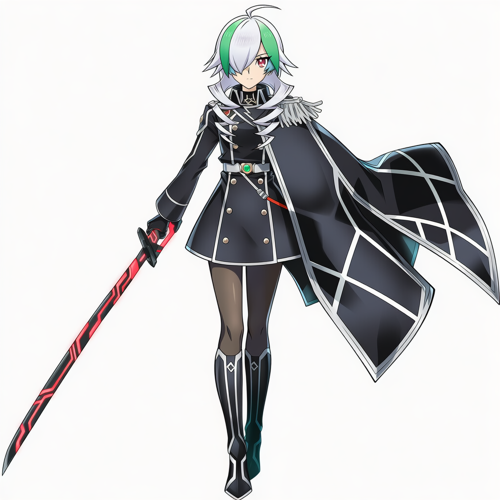 | 8k,anime coloring,official style,game cg,sky striker ace - camellia, yu-gi-oh!,red eyes,hair between eyes,hair over eye, floating hair,black military uniform, black gloves, right side cape, black pantyhose, black boots | | 遊戯王 | 閃刀姫−カメリア | V4.5使用 |  | 編集 |