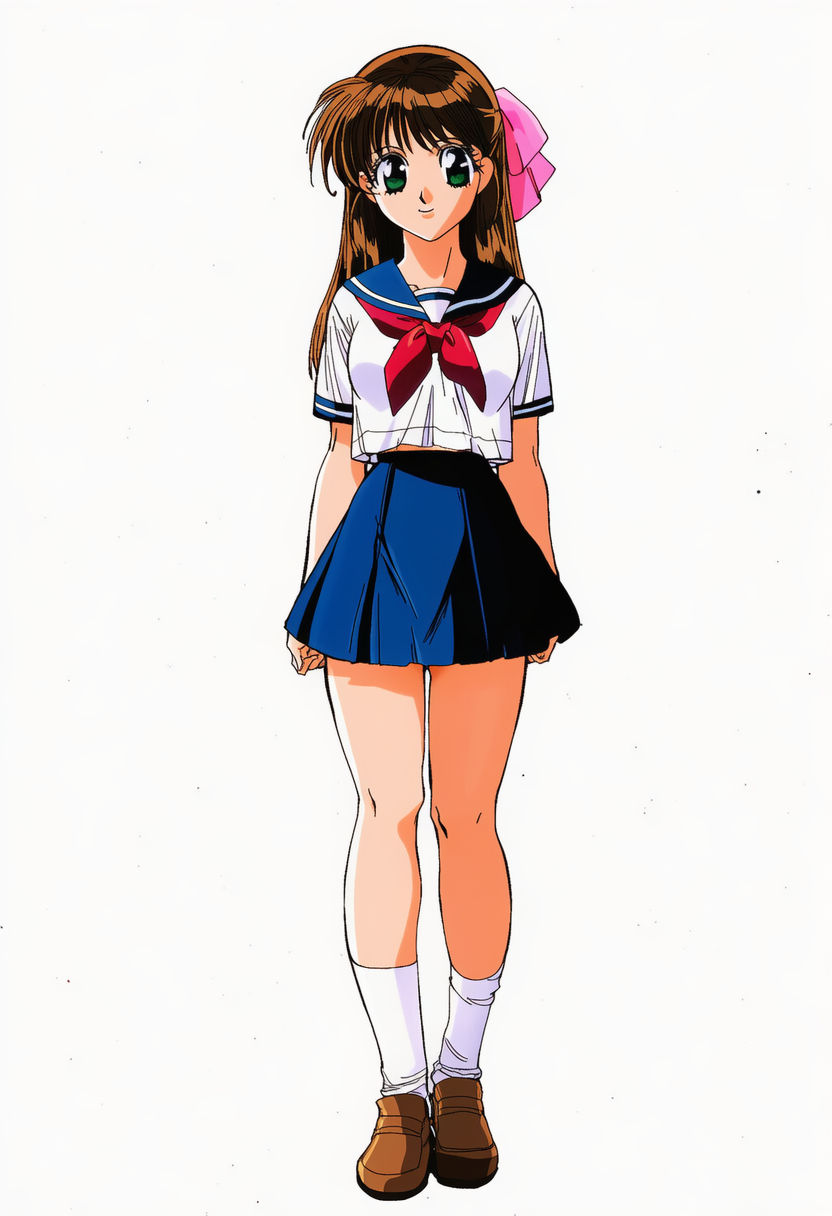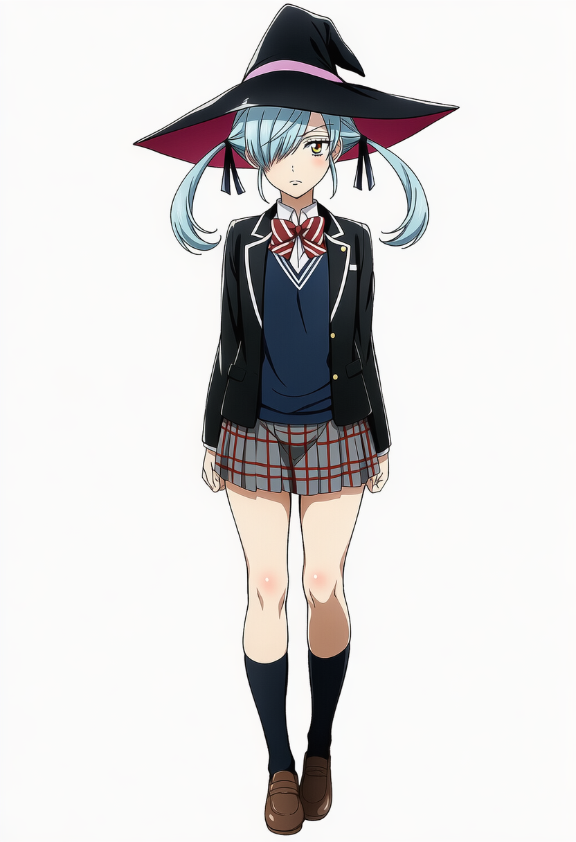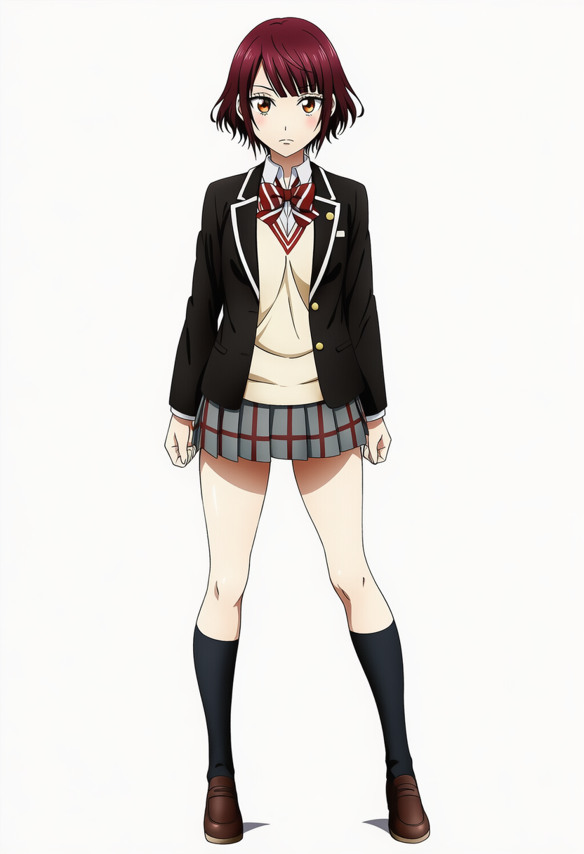 | {{{zaizen aoi, brown short hair}}}, {yu-gi-oh! vrains}, brown eyes, 1girl, solo, school uniform, blue necktie, black jacket, white collared shirt, yellow cardigan, open jacket, long sleeves, black pleated miniskirt, black socks, brown leather shoes, bare thighs, leg up, shiny skin, white background, simple background, serious, looking at viewer, cowboy shot, intricate, hyper-detailed, 100-layer, amazing quality, excellent, {{{{ultra-high resolution}}}}, {{{hi-vision anime}}}, | 3d, poorly drawn, lowers, blurry, bokeh, worst quality, low quality, out of focus, ugly, error, jpeg artifacts, {{censor, bar censor}}, mosaic censorship, puffy nipples, extra digits, long body, cubism, bad anatomy, disfigured, poorly drawn, deformed, mutation, cloak, cape, capelet, | 遊戯王Vrains | 財前葵 | V3使用。異常なまでに青髪で出力されるので、brown hairを強調し、そして除外したいプロンプトにblue hairを入れて茶髪の財前葵を出しやすくした方が良いです |  | 編集 |