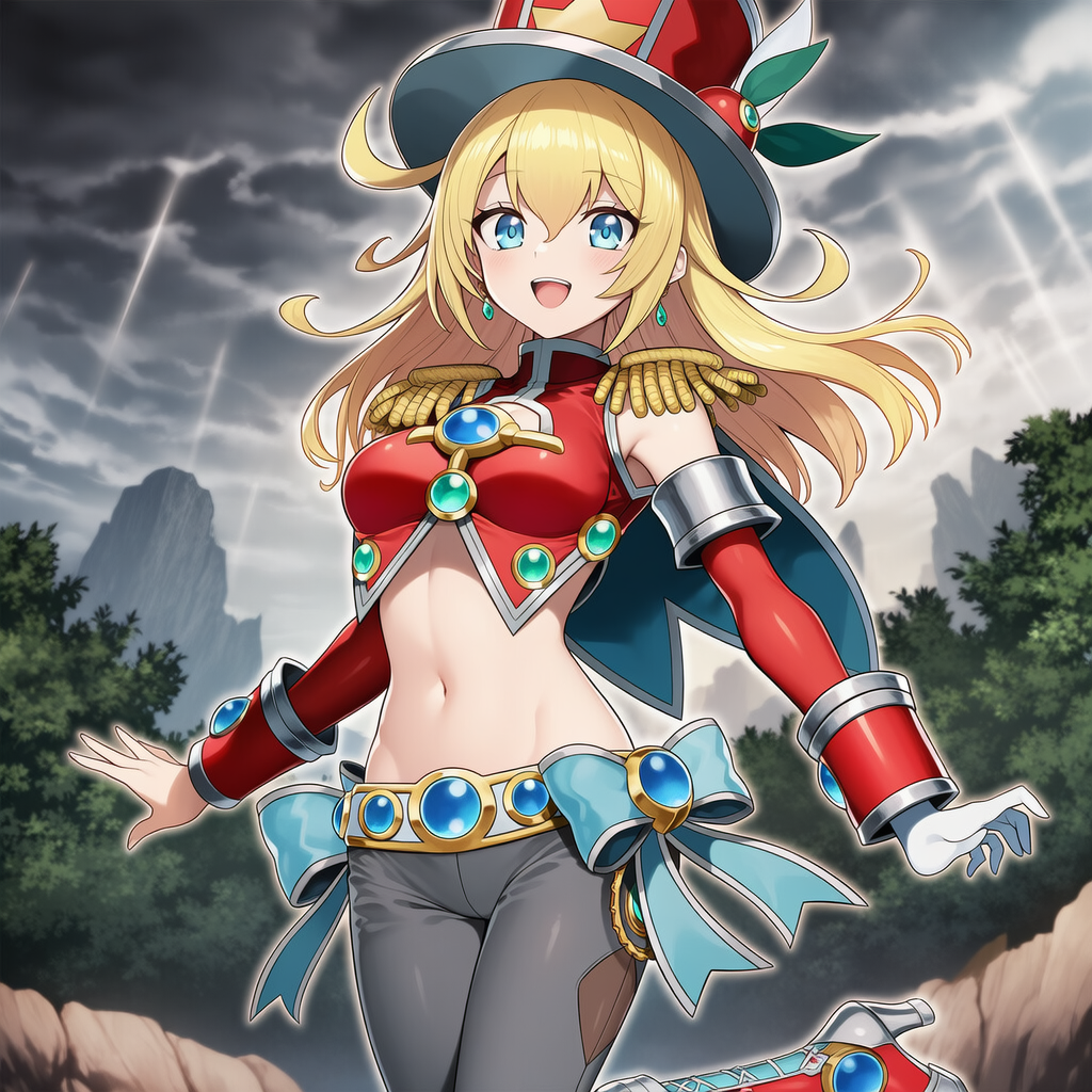 | 2d cel anime, {{dark magician girl, yu-gi-oh!}}, very aesthetic, best quality, intricate, overall detail, 1 girl, standing, light smile, simple background, front view, cowboy shot, facing the front, straight-on, solo focus, depth of field, highly detailed, | {{3d}}, poorly drawn, lowers, blurry, bokeh, worst quality, low quality, out of focus, ugly, error, jpeg artifacts, {{{{censor, bar censor}}}}, mosaic censorship, puffy nipples, extra digits, POV hands, | 遊戯王 | ブラックマジシャンガール(V2での出力) | 衣装ほかの再現度が高い。青眼の白龍はちょっと無理っぽい。 |  | 編集 |