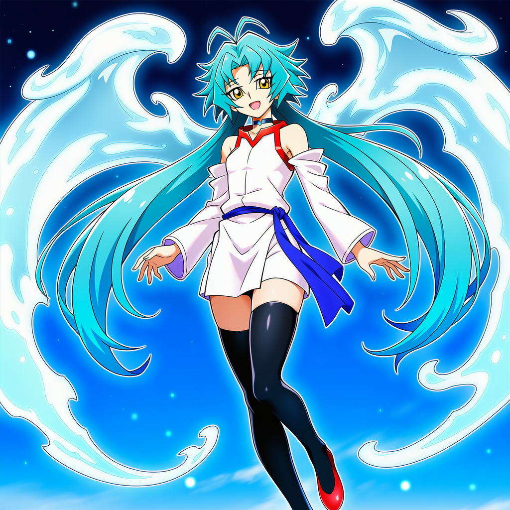 | 8k,official style,anime coloring,official style,game cg,Effect Veiler, yu-gi-oh!,see-through angel wings,blue/black choker, white sleeveless dress, white detached sleeves, blue sash, black thighhighs, red shoes | | 遊戯王 | エフェクト・ヴェーラー | V4使用,V4.5生成可 |  | 編集 |