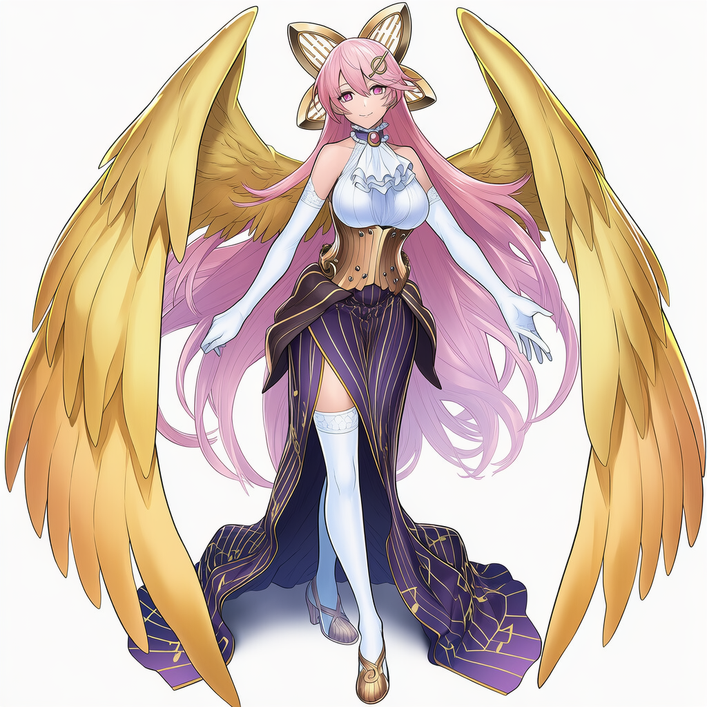 | Gransolfachord Coolia,yu-gi-oh!,musical note hair ornament, frilled choker, gold wings,long mermaid skirt, dark purple or navy skirt, white elbow gloves, white thighhighs, gold high heels | | 遊戯王 | グランドレミコード・クーリア | V4.5使用服が完全ではないがそれっぽく出力 |  | 編集 |