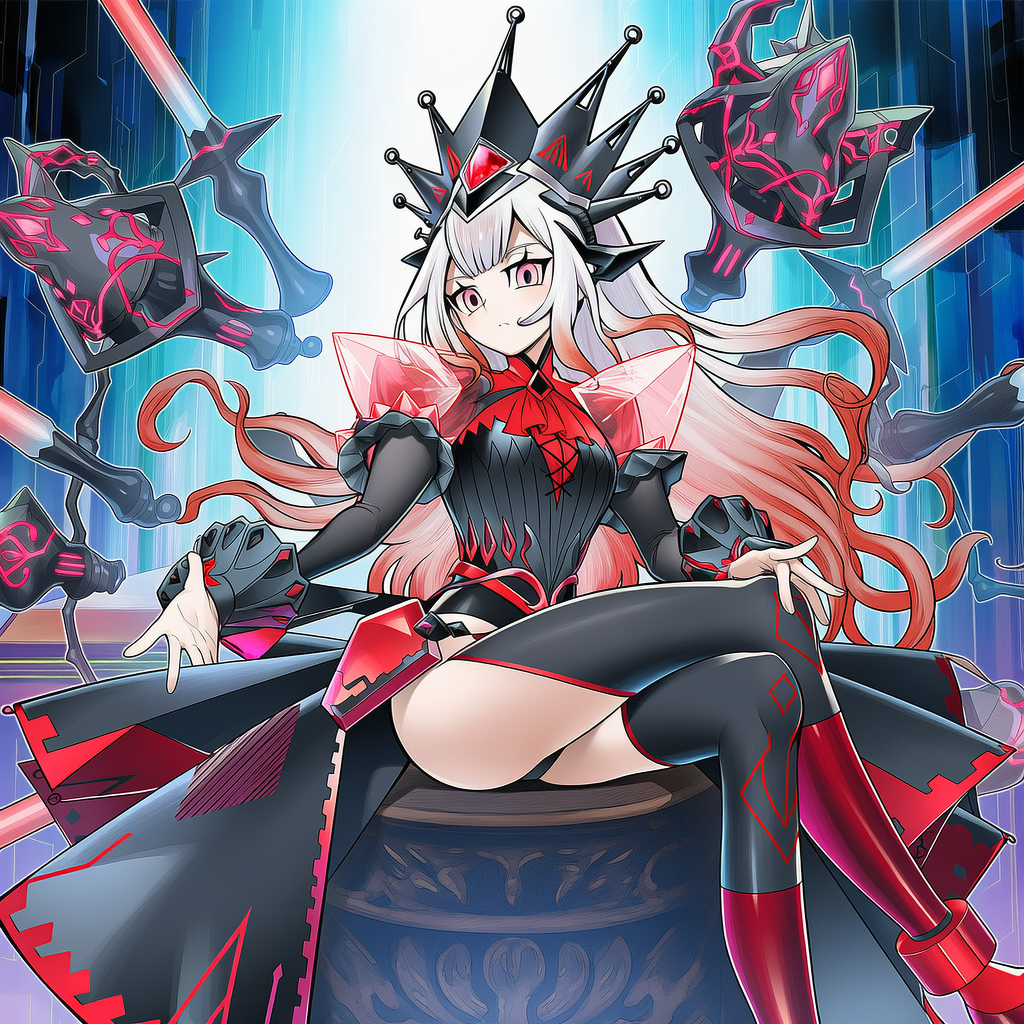 | M∀lice <Q> Red Ransom,yu-gi-oh!,red knee boots, red ascot, black thighhighs, black dress, black leotard, black crown, pelvic curtain | | 遊戯王 | マリス<クイーン>レッド・ランサム | V4.5使用 |  | 編集 |