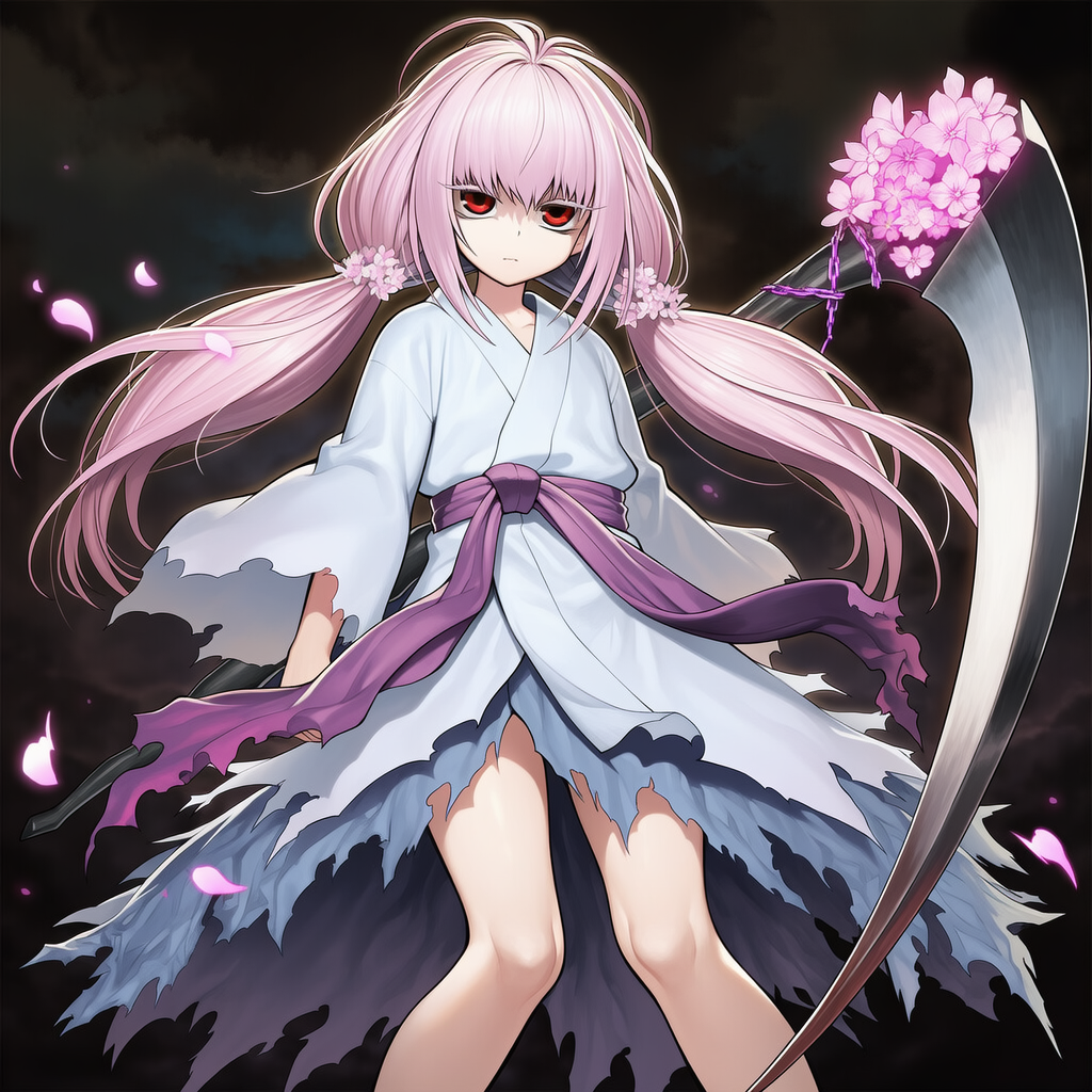| Ghost Reaper & Winter Cherries,yu-gi-oh!,long hair, twintails, japanese clothes,kimono,sash, long sleeves, | | 遊戯王 | 浮幽さくら | V4.5使用 |  | 編集 |