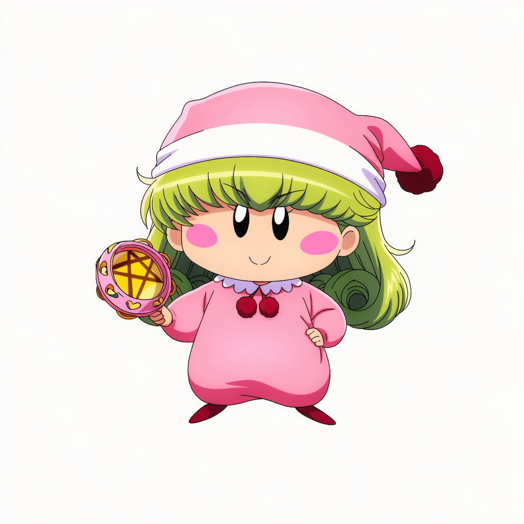 | rirumu (mirumo de pon!), mirumo de pon!, girl, chibi, pink hat, pink pajamas, holding tambourine, standing, full body, straight-on, | わがまま☆フェアリーミルモでポン! | リムル | V4.5 Full版使用。キャラクタープロンプト1のみ記述。 | ![]() | 編集 | |
