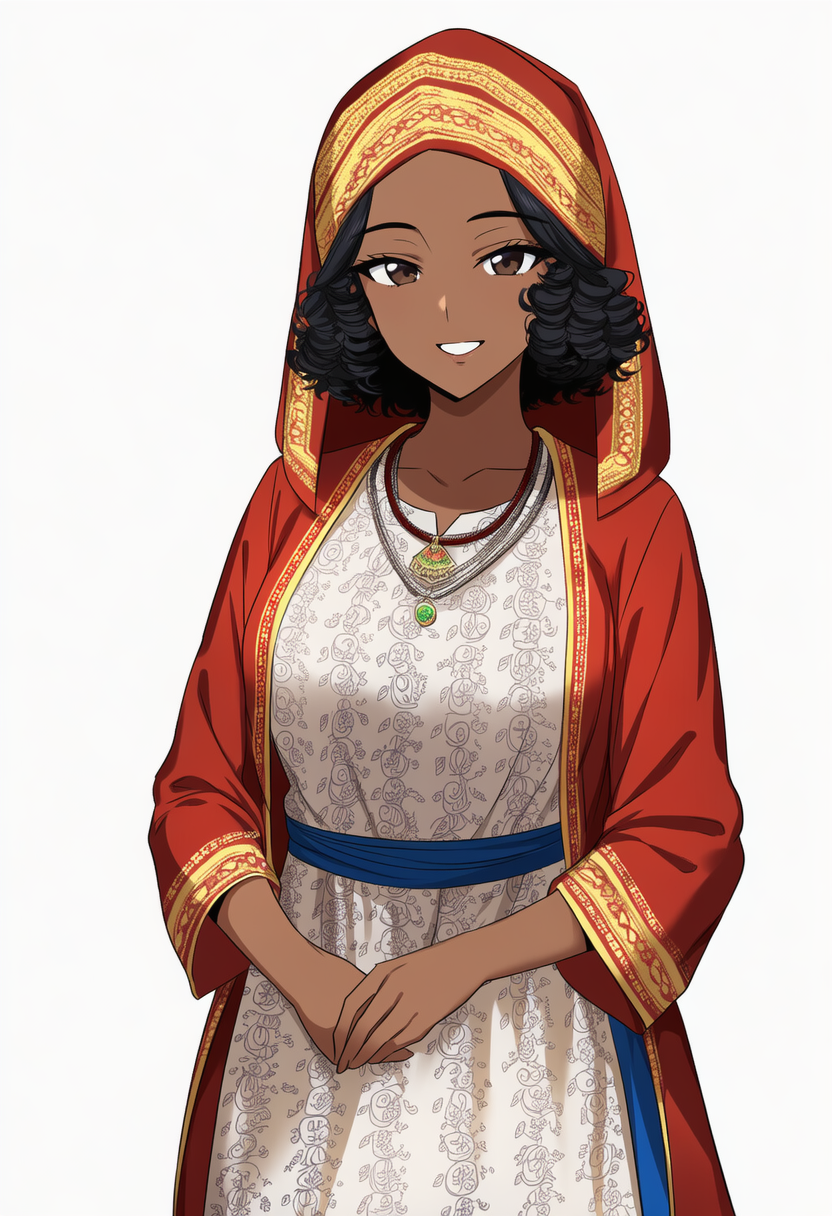 | babushka | バブーシュカ | 本来は頭に被るスカーフ(三角巾のような感じ)を意味している。描写上はゆったりしたフードとなる。言葉で修飾することで質感などを調節できる(サンプルはcrochetを追加している)。 | ![]() | 編集 |