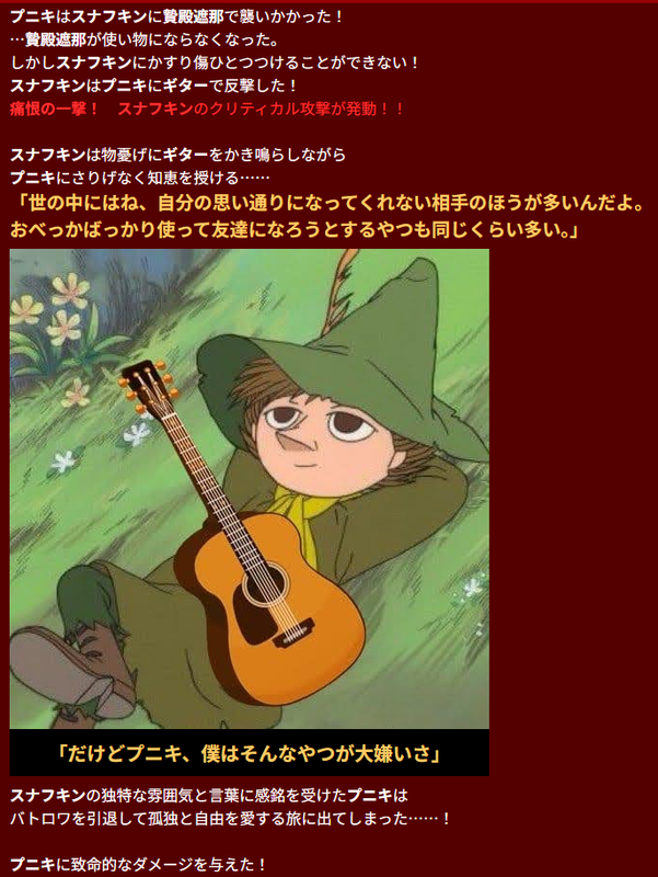 スナフキンの独特な雰囲気と言葉に感銘を受けた○○は