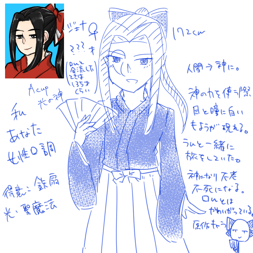 | 一人称 | 二人称 | 口調 | 誕生日 | 髪色 | 瞳の色 | 好きな色 | イメージ色 | 得意技能 |
