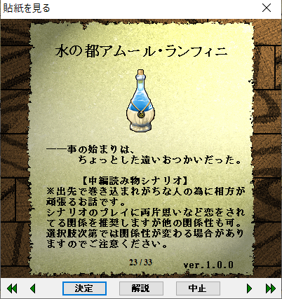 | シナリオ所在地 | こちら≪水の都アムール・ランフィニ≫ |