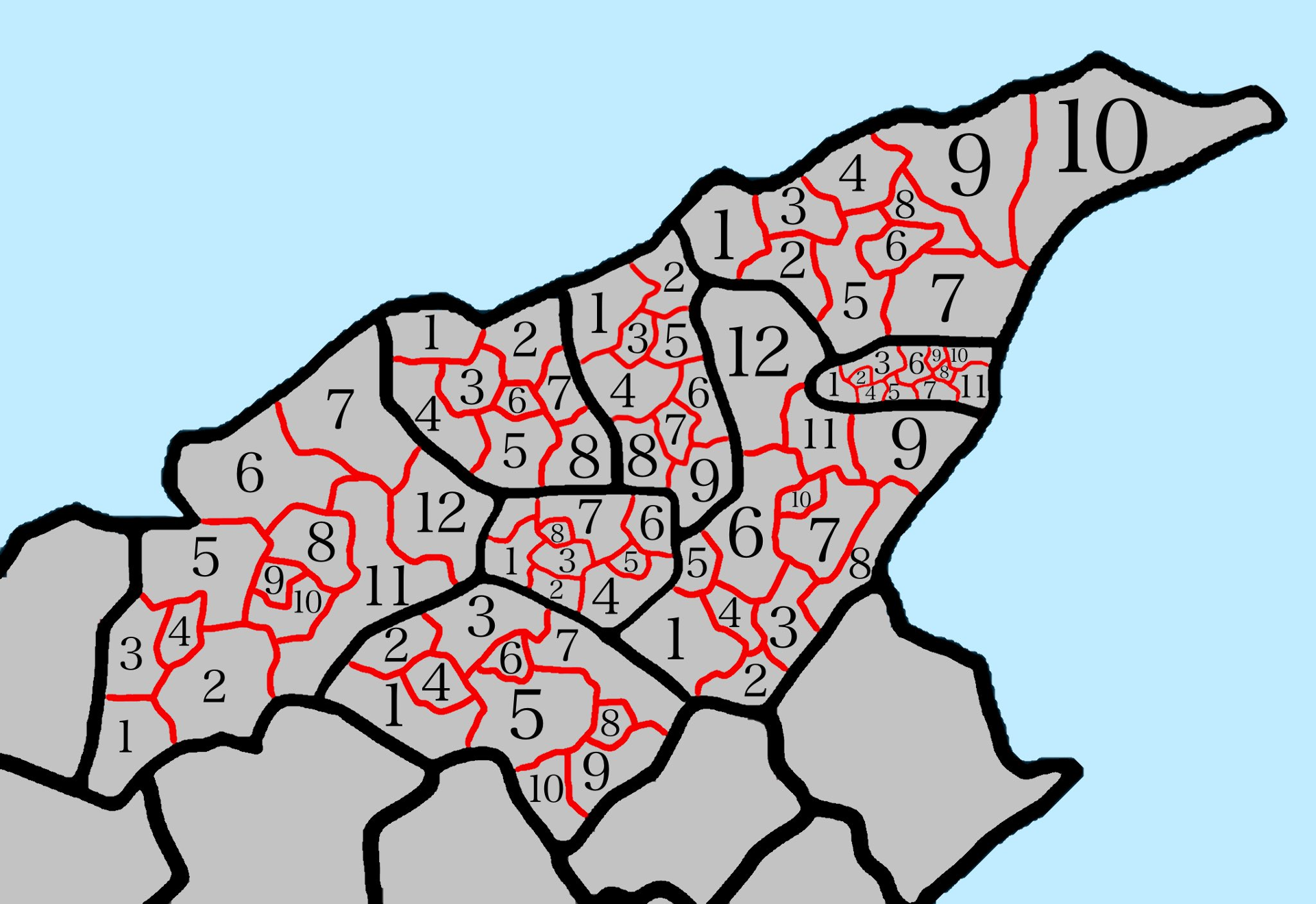 内閣府、法務部、国防部、外務部、文化教育部、総務部、産業部、国土交通部、財務部、保健福祉部、観光局、環境局、国土安全局、兵務局、消防局
