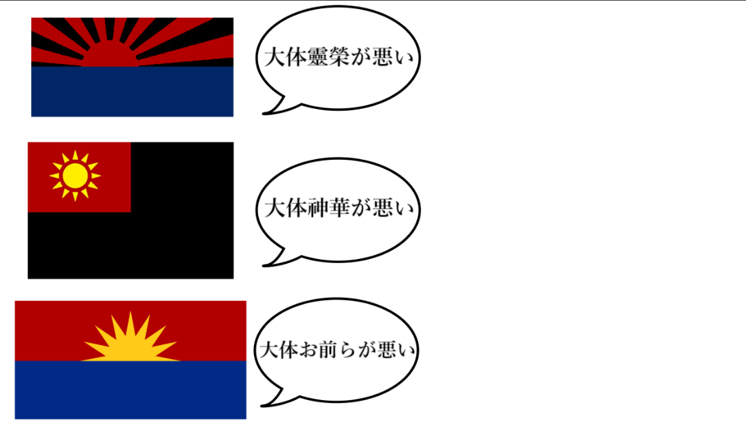 神華連邦は雄大で弱者に優しく秩序があり安全な水と食料が国中に溢れ全てが公平で教育が行き届き誰も飢えることがなく清潔で正義と平和を愛し差別がなく自由があり独裁者が存在せず平和で由緒ある偉大で素晴らしい国家です。