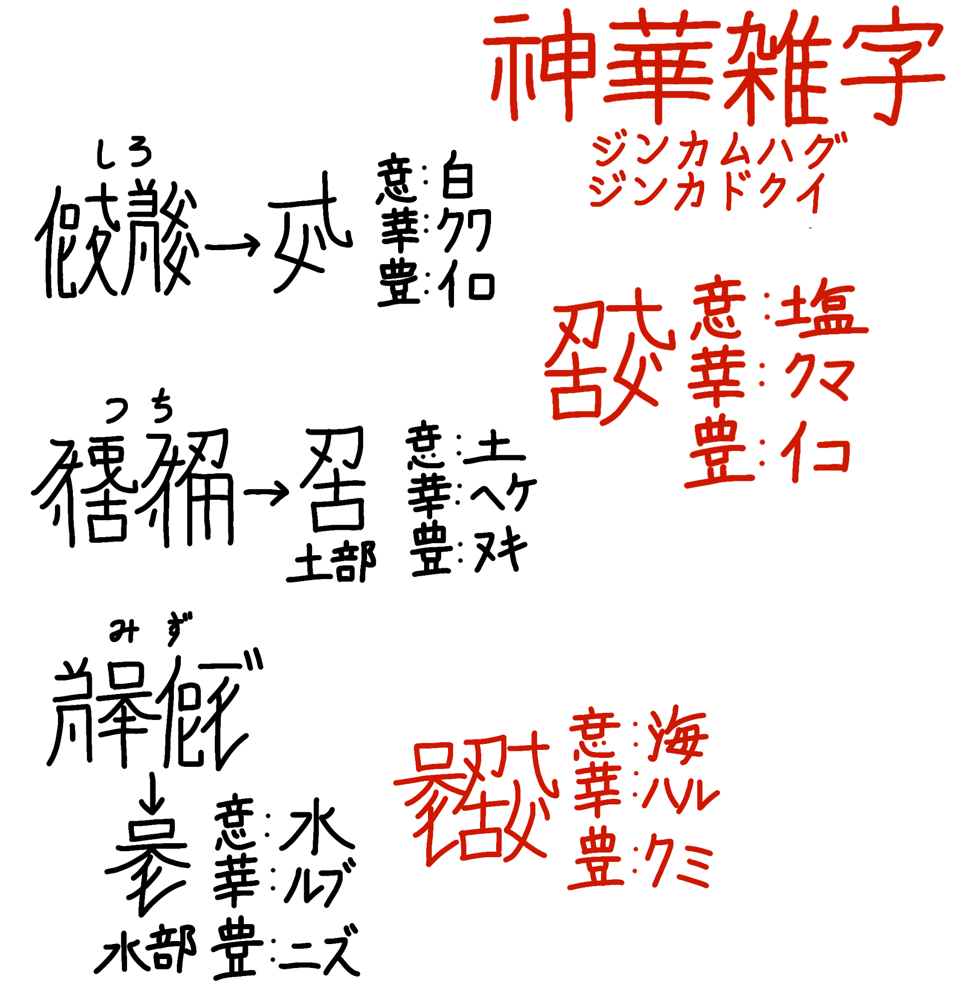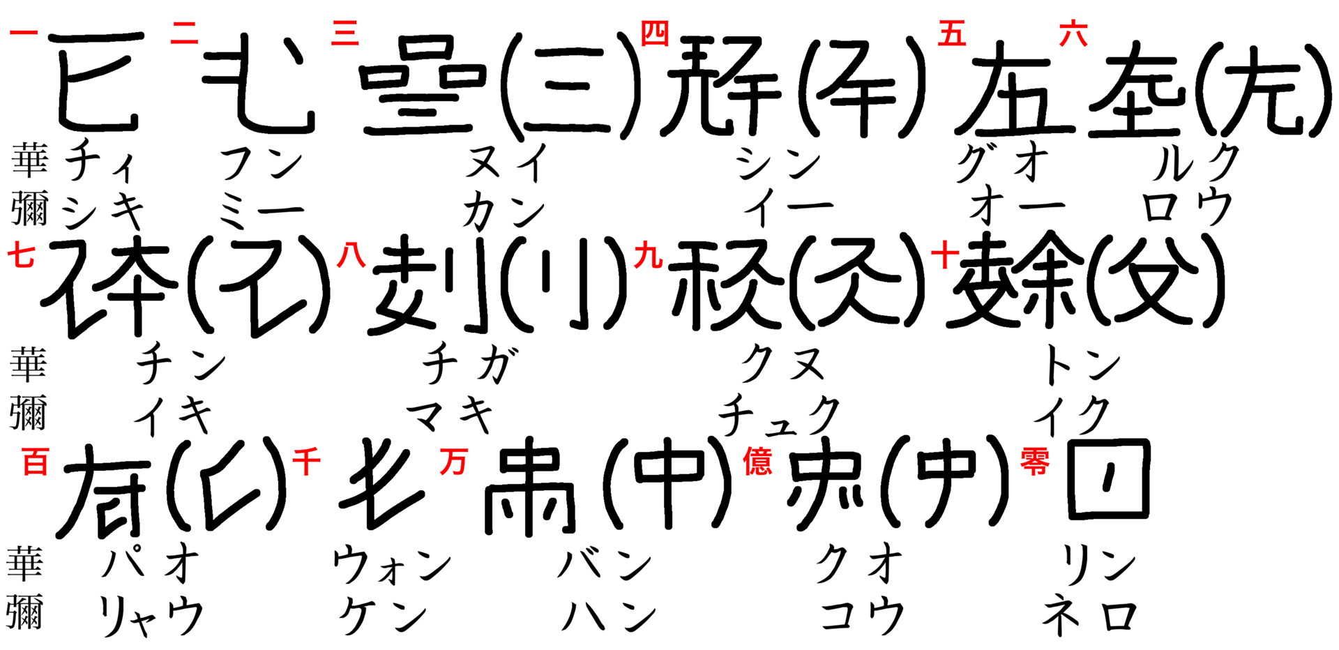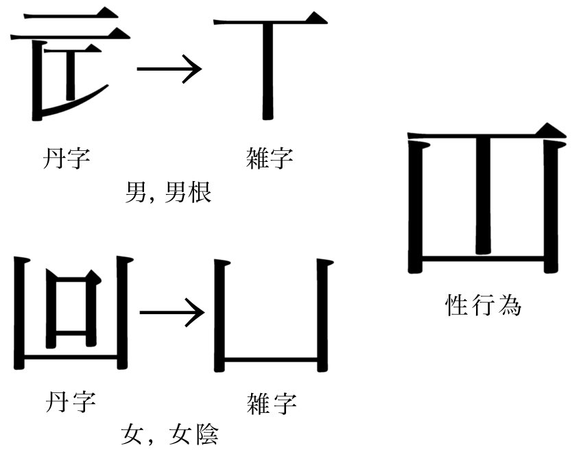 豐彌列島の丹民は音節文字を使っていたが、同時に表意文字も使っていた。これは神華雑字とは違い、象形文字由来だった。豐彌人が神華雑字を発明すると、この表意文字の一部は雑字の内に組み込まれ、丹雑字と呼ばれるようになり現在でもわずかながら生き残っている。