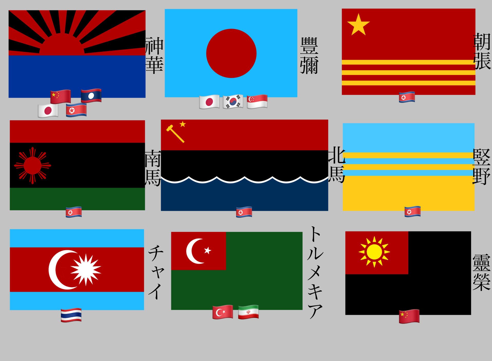 山州合意後の豐彌帝国では「大陸軍」と呼ばれる豐彌陸軍の部隊が勢力を広げ、豐彌の大陸政策の先兵となった。次第に大陸軍は朝張と総竪で総督府への積極的な介入を行うなど本土にとって脅威の存在となっていった。豐彌が降伏すると大陸軍は総督府を制圧し、神華の支援で抗戦政府を樹立した。