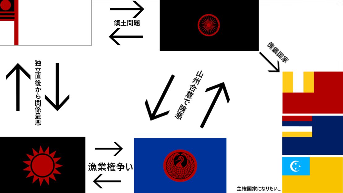 下脳世界では領海の規定やEEZのようなものは存在せず、各国・各陣営が自分勝手に領海を設定しているので陸上よりも無法地帯になってます。どこの国にも属さない海域がいくつか存在し、そこは様々な国の核実験場となっています。