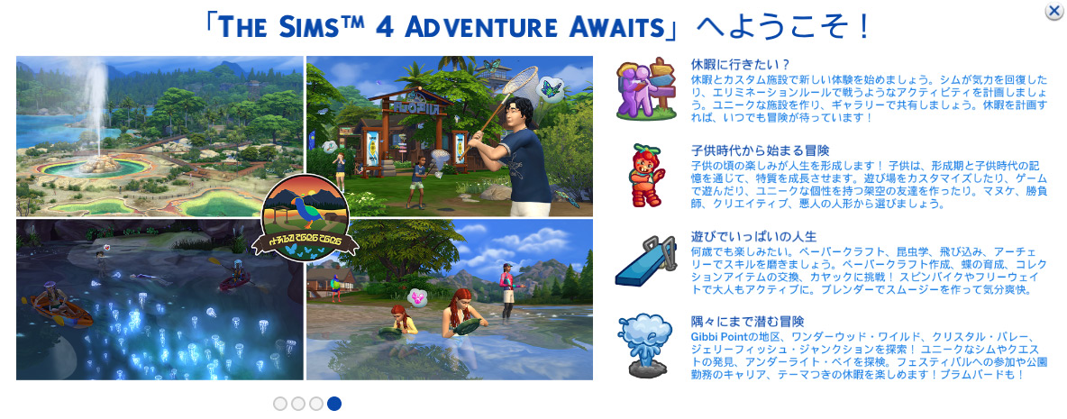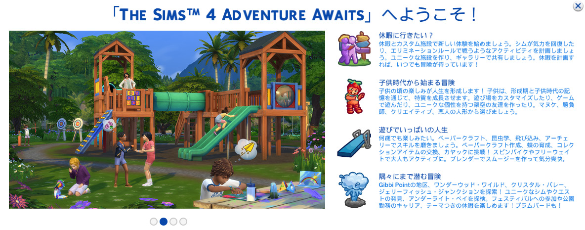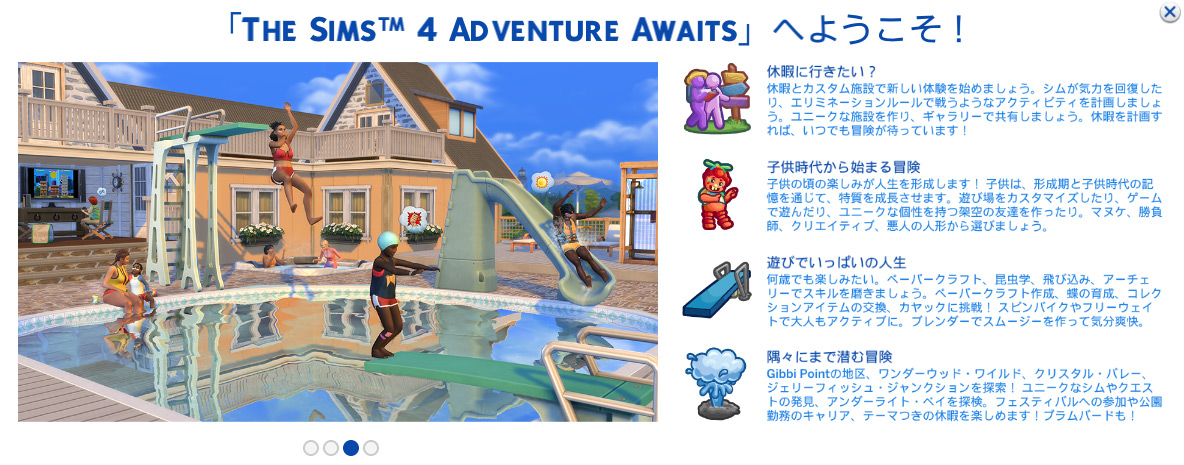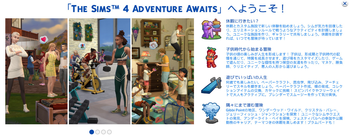 「The Sims™ 4 Adventure Awaits Expansion Pack」で、大胆なアクティビティいっぱいの休暇を楽しみ、日常生活から自由になりましょう。