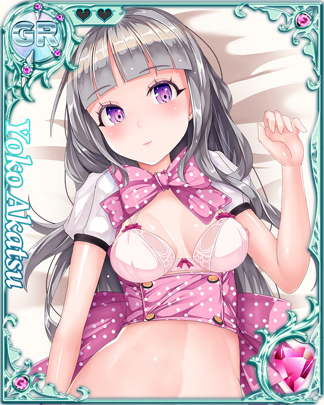 | GR | 本当に、2人きり、なのですね……。あう、緊張してます……。 こういう時、なんて、言えば良いのかわからなくて……気の利いた言葉が出なくて、もどかしいです……。 でも、その……うまく言えませんが、私、とても、幸せな気持ち、みたいです。 ……今にも逃げ出したい気持ちより、あなたと居たい気持ちの方が、強い、です。 |