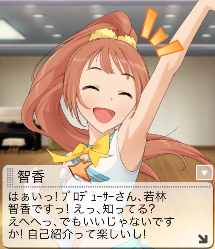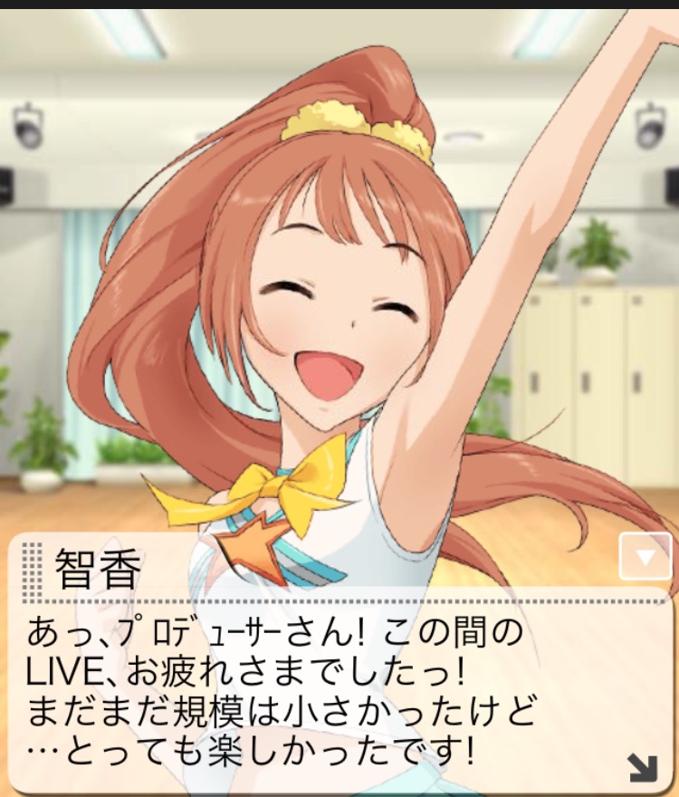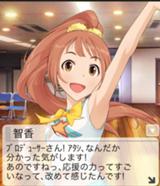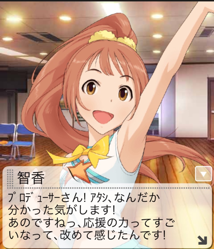 智香「アイドルになって、もっともっと笑顔を磨いて、たくさんの人たちを応援できたらいいな!そのためにもレッスン、頑張りますっ☆」