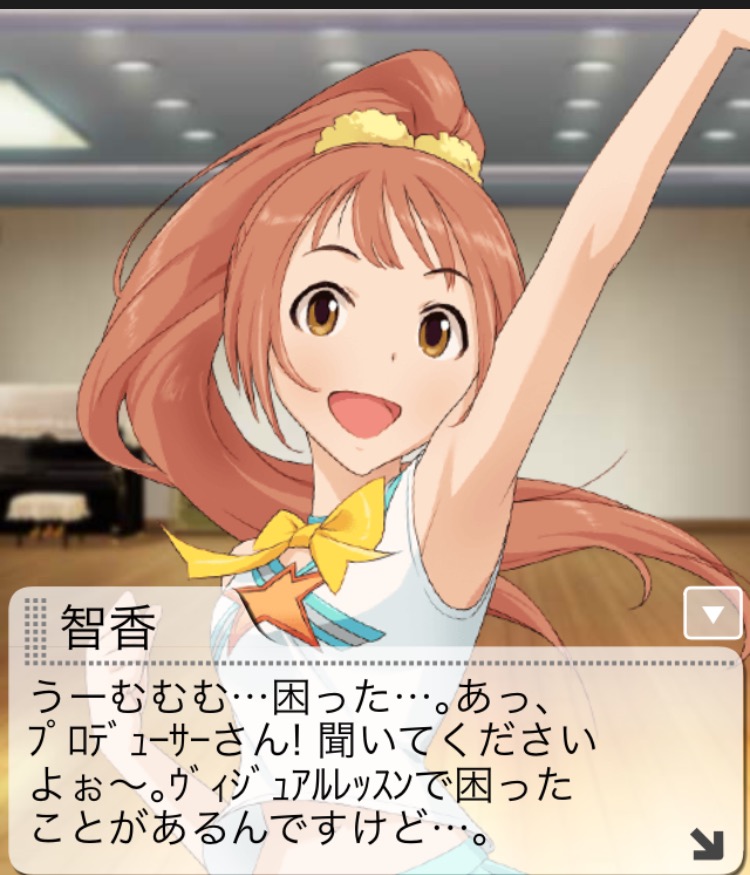 智香「うーむむむ…困った…。あっ、プロデューサーさん!聞いてくださいよぉ〜。ヴィジュアルレッスンで困ったことがあるんですけど…。」
