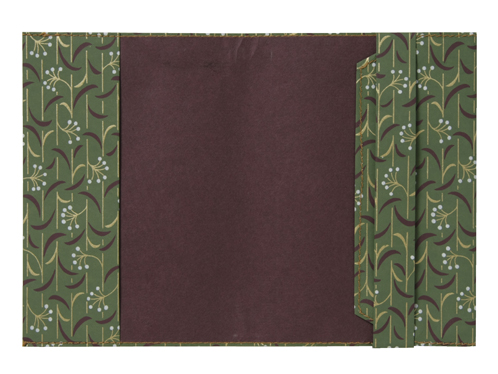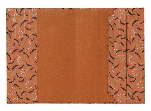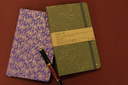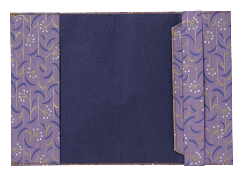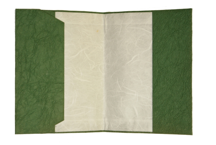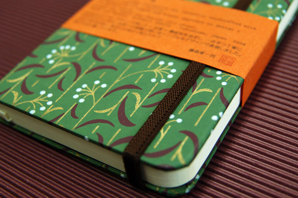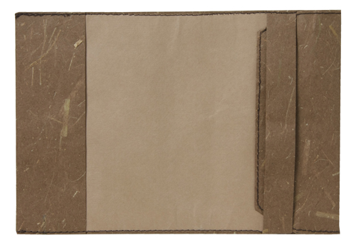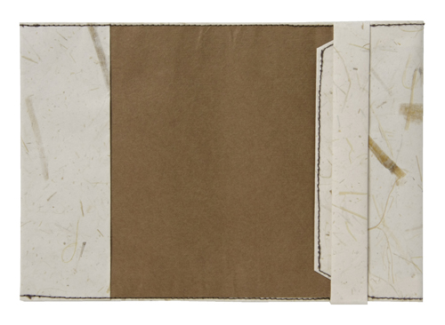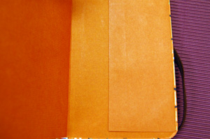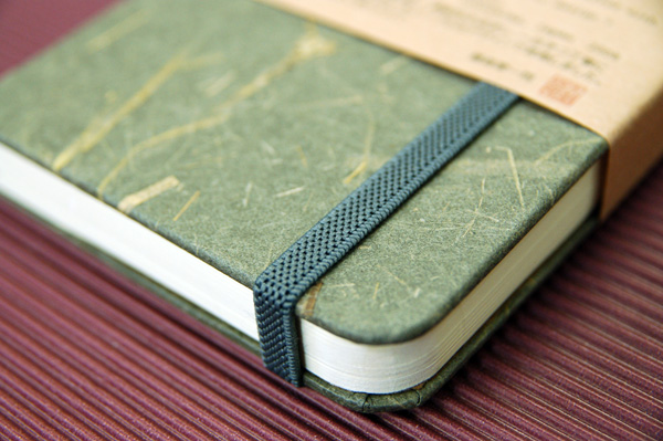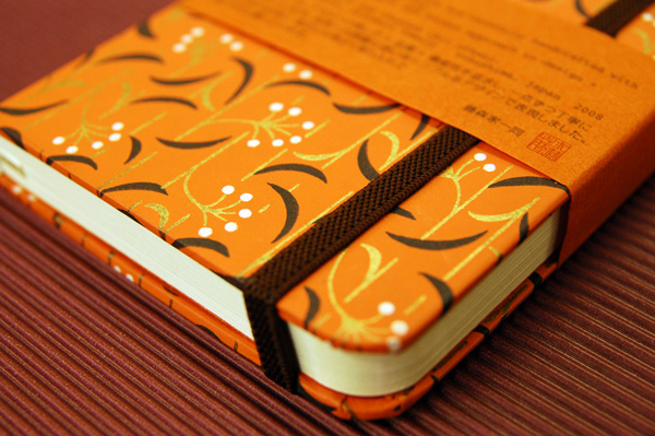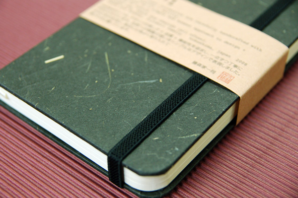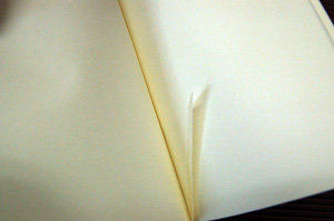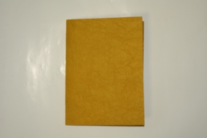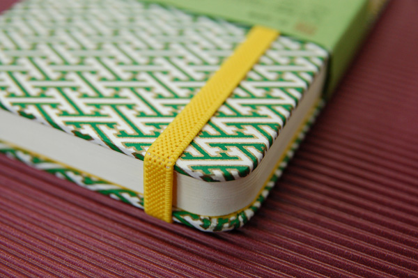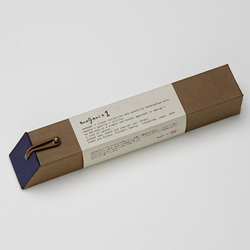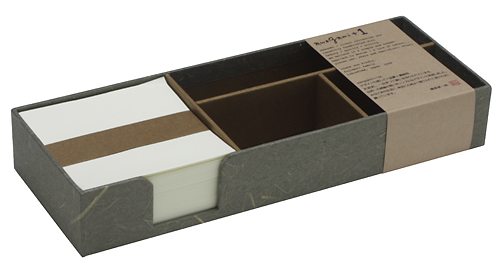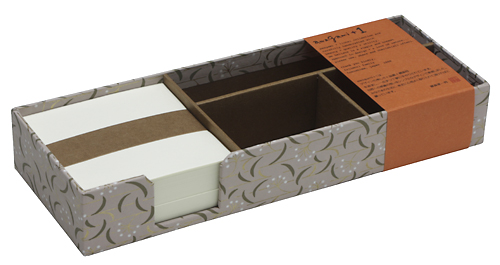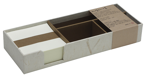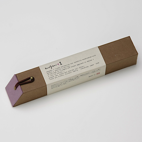 ![]() 中紙は少しクリームがかった無地です | ![]() 表紙裏にはawagami+1が刻印されています |