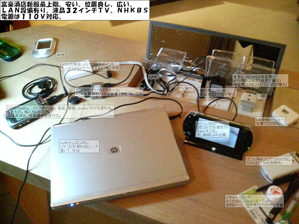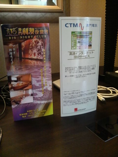 | 英皇酒店。電源1。ネット接続は部屋に無い。ビジネスセンター | ||